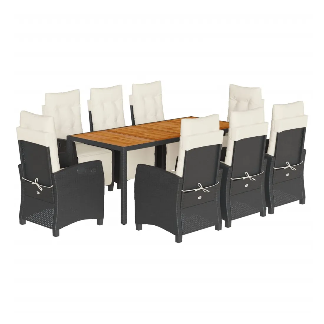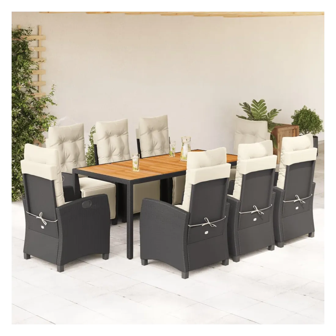 Cet ensemble de salle à manger de jardin est un excellent choix pour les repas en plein air ou pour vous détendre dans le jardin, l'arrière-cour ou le patio. Matériau durable : la résine tressée, également connue sous le nom de poly rotin, est un matériau synthétique solide et nécessitant peu d'entretien qui ressemble au rotin naturel. Il est léger, facile à nettoyer et couramment utilisé pour les meubles d'extérieur en raison de sa durabilité et de ses propriétés de résistance aux intempéries.Dossier et repose-pied réglables : ce siège de jardin est doté d'une poignée. Vous pouvez régler le dossier et le repose-pied dans n'importe quelle position en tirant sur la poignée, et les remettre rapidement dans leur position initiale.Dessus stable et facile à nettoyer : cette table de jardin a un dessus en bois d'acacia robuste, durable et facile à nettoyer avec un chiffon humide.Expérience d'assise confortable : ce mobilier d'extérieur, doté de coussins épais, offre une expérience d'assise confortable.Housse amovible et lavable : ces coussins de siège sont dotés de housses amovibles pour un lavage et un entretien faciles. Bon à savoir :Pour que vos meubles d'extérieur restent beaux, nous vous recommandons de les protéger avec une housse imperméable.