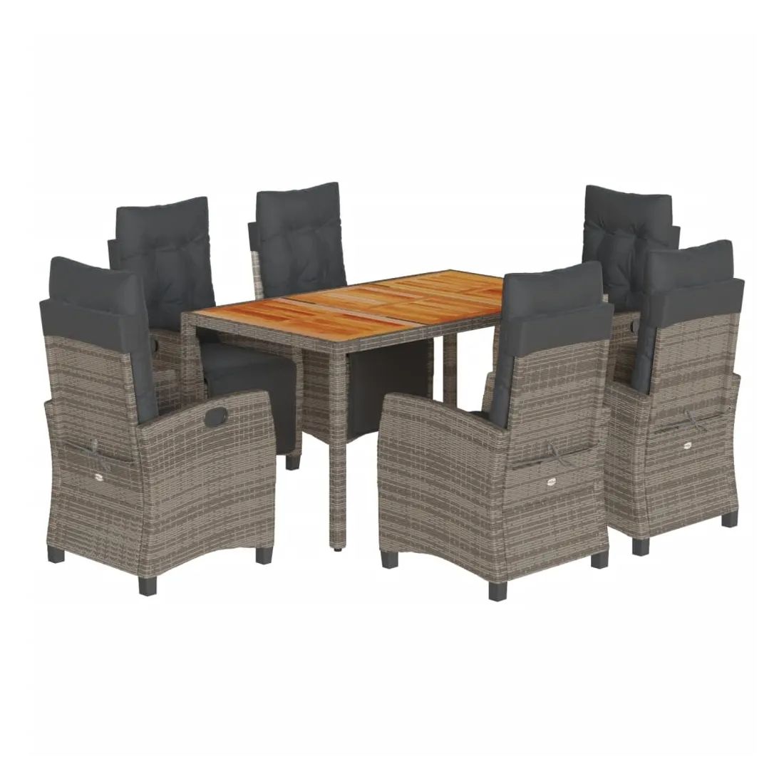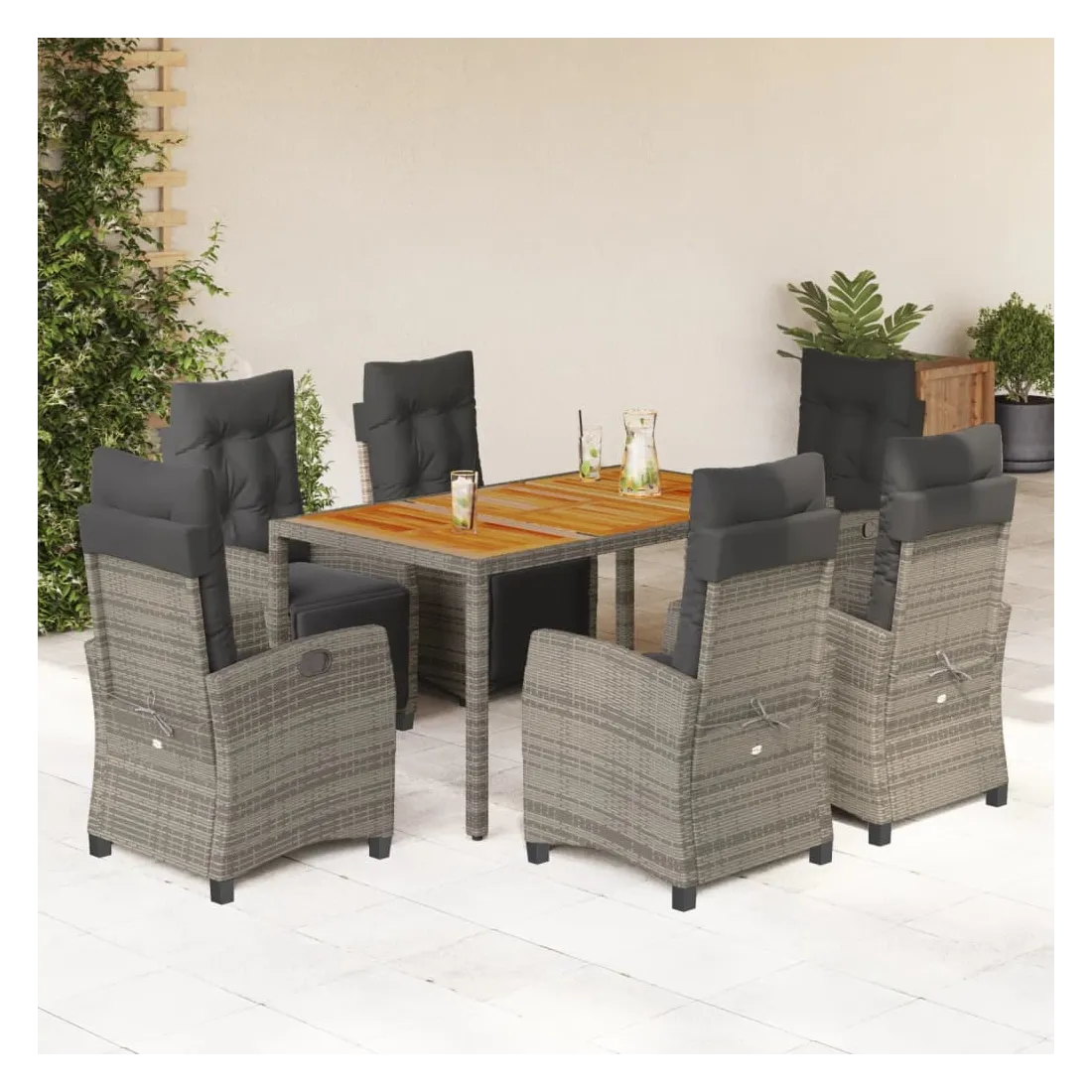 Cet ensemble de salle à manger de jardin est un excellent choix pour les repas en plein air ou pour vous détendre dans le jardin, l'arrière-cour ou le patio. Matériau durable : la résine tressée, également connue sous le nom de poly rotin, est un matériau synthétique solide et nécessitant peu d'entretien qui ressemble au rotin naturel. Il est léger, facile à nettoyer et couramment utilisé pour les meubles d'extérieur en raison de sa durabilité et de ses propriétés de résistance aux intempéries.Dossier et repose-pied réglables : ce siège de jardin est doté d'une poignée. Vous pouvez régler le dossier et le repose-pied dans n'importe quelle position en tirant sur la poignée, et les remettre rapidement dans leur position initiale.Dessus stable et facile à nettoyer : cette table de jardin a un dessus en bois d'acacia robuste, durable et facile à nettoyer avec un chiffon humide.Expérience d'assise confortable : ce mobilier d'extérieur, doté de coussins épais, offre une expérience d'assise confortable.Housse amovible et lavable : ces coussins de siège sont dotés de housses amovibles pour un lavage et un entretien faciles. Bon à savoir :Pour que vos meubles d'extérieur restent beaux, nous vous recommandons de les protéger avec une housse imperméable.