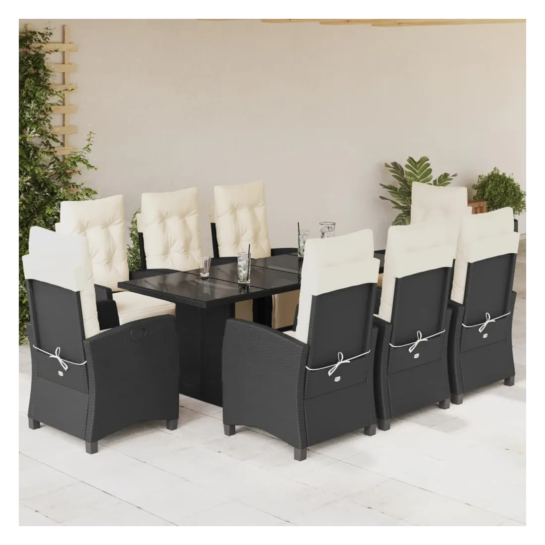 Cet ensemble de salle à manger de jardin est un excellent choix pour les repas en plein air ou pour vous détendre dans le jardin, l'arrière-cour ou le patio. Matériau durable : la résine tressée, également connue sous le nom de poly rotin, est un matériau synthétique solide et nécessitant peu d'entretien qui ressemble au rotin naturel. Il est léger, facile à nettoyer et couramment utilisé pour les meubles d'extérieur en raison de sa durabilité et de ses propriétés de résistance aux intempéries.Dossier et repose-pied réglables : ce siège de jardin est doté d'une poignée. Vous pouvez régler le dossier et le repose-pied dans n'importe quelle position en tirant sur la poignée, et les remettre rapidement dans leur position initiale.Dessus en verre : le dessus de la table d'extérieur est fabriqué en verre trempé solide et durable, ce qui le rend facile à nettoyer avec un chiffon humide et ajoute une touche d'élégance à votre espace extérieur.Expérience d'assise confortable : ce mobilier d'extérieur, doté de coussins épais, offre une expérience d'assise confortable.Housse amovible et lavable : ces coussins de siège sont dotés de housses amovibles pour un lavage et un entretien faciles. Bon à savoir :Pour que vos meubles d'extérieur restent beaux, nous vous recommandons de les protéger avec une housse imperméable.