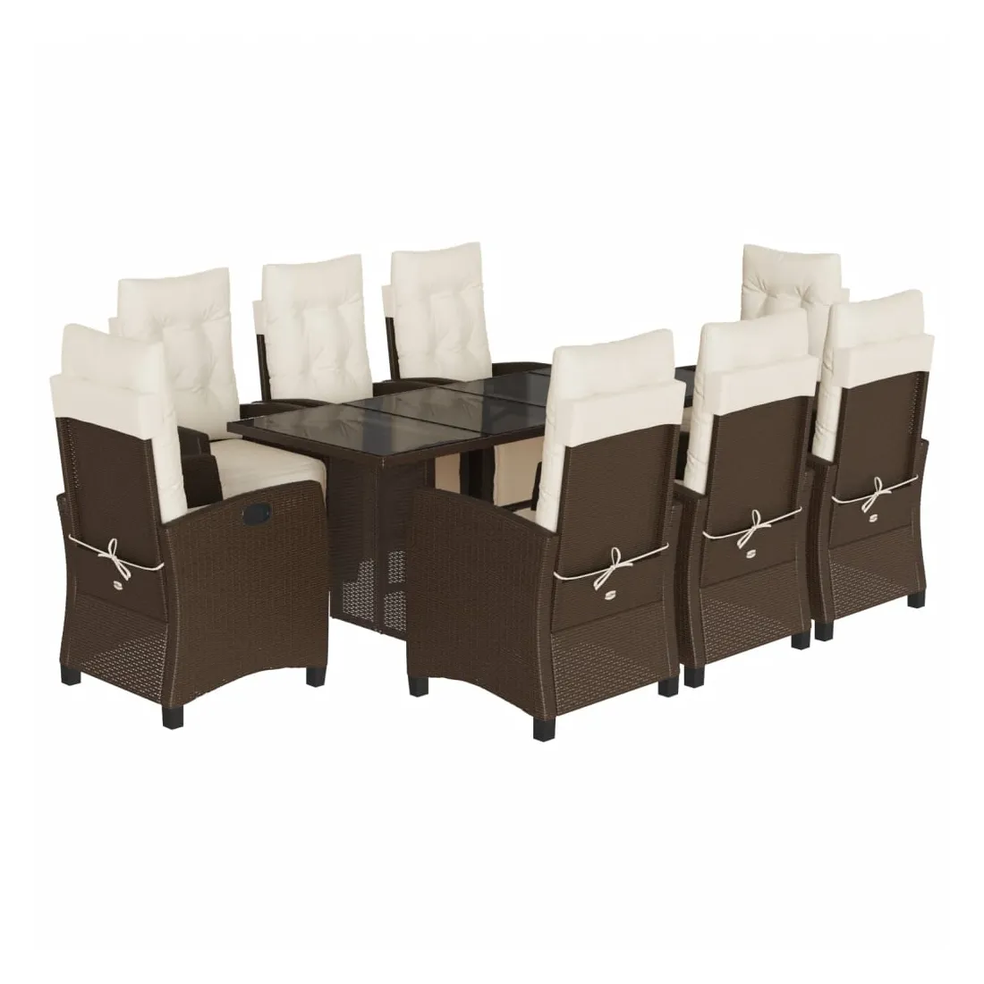 Cet ensemble de salle à manger de jardin est un excellent choix pour les repas en plein air ou pour vous détendre dans le jardin, l'arrière-cour ou le patio. Matériau durable : la résine tressée, également connue sous le nom de poly rotin, est un matériau synthétique solide et nécessitant peu d'entretien qui ressemble au rotin naturel. Il est léger, facile à nettoyer et couramment utilisé pour les meubles d'extérieur en raison de sa durabilité et de ses propriétés de résistance aux intempéries.Dossier et repose-pied réglables : ce siège de jardin est doté d'une poignée. Vous pouvez régler le dossier et le repose-pied dans n'importe quelle position en tirant sur la poignée, et les remettre rapidement dans leur position initiale.Dessus en verre : le dessus de la table d'extérieur est fabriqué en verre trempé solide et durable, ce qui le rend facile à nettoyer avec un chiffon humide et ajoute une touche d'élégance à votre espace extérieur.Expérience d'assise confortable : ce mobilier d'extérieur, doté de coussins épais, offre une expérience d'assise confortable.Housse amovible et lavable : ces coussins de siège sont dotés de housses amovibles pour un lavage et un entretien faciles. Bon à savoir :Pour que vos meubles d'extérieur restent beaux, nous vous recommandons de les protéger avec une housse imperméable.