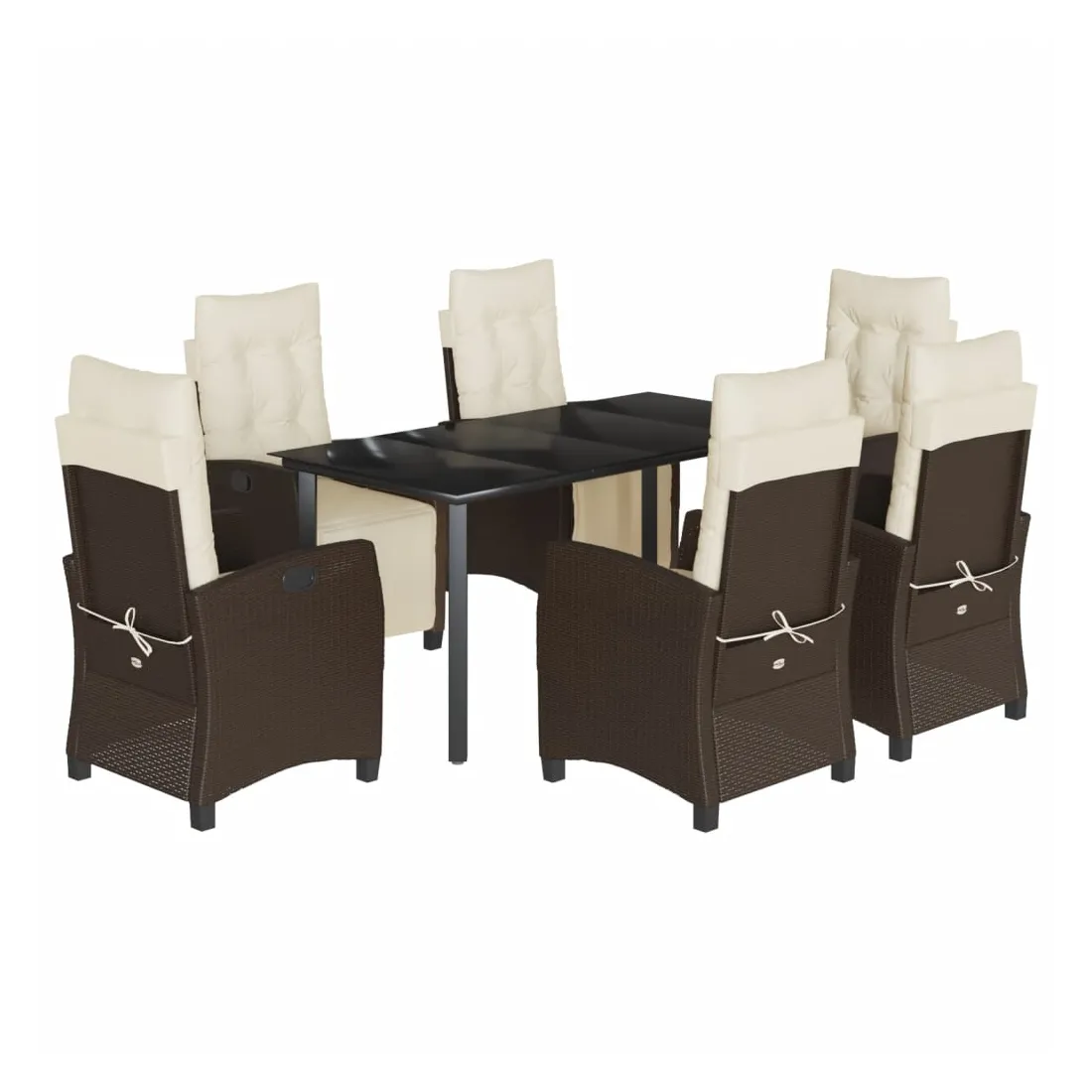 Cet ensemble de salle à manger de jardin est un excellent choix pour les repas en plein air ou pour vous détendre dans le jardin, l'arrière-cour ou le patio. Matériau durable : la résine tressée, également connue sous le nom de poly rotin, est un matériau synthétique solide et nécessitant peu d'entretien qui ressemble au rotin naturel. Il est léger, facile à nettoyer et couramment utilisé pour les meubles d'extérieur en raison de sa durabilité et de ses propriétés de résistance aux intempéries.Dossier et repose-pied réglables : ce siège de jardin est doté d'une poignée. Vous pouvez régler le dossier et le repose-pied dans n'importe quelle position en tirant sur la poignée, et les remettre rapidement dans leur position initiale.Dessus en verre : le dessus de la table d'extérieur est fabriqué en verre trempé solide et durable, ce qui le rend facile à nettoyer avec un chiffon humide et ajoute une touche d'élégance à votre espace extérieur.Expérience d'assise confortable : ce mobilier d'extérieur, doté de coussins épais, offre une expérience d'assise confortable.Housse amovible et lavable : ces coussins de siège sont dotés de housses amovibles pour un lavage et un entretien faciles. Bon à savoir :Pour que vos meubles d'extérieur restent beaux, nous vous recommandons de les protéger avec une housse imperméable.