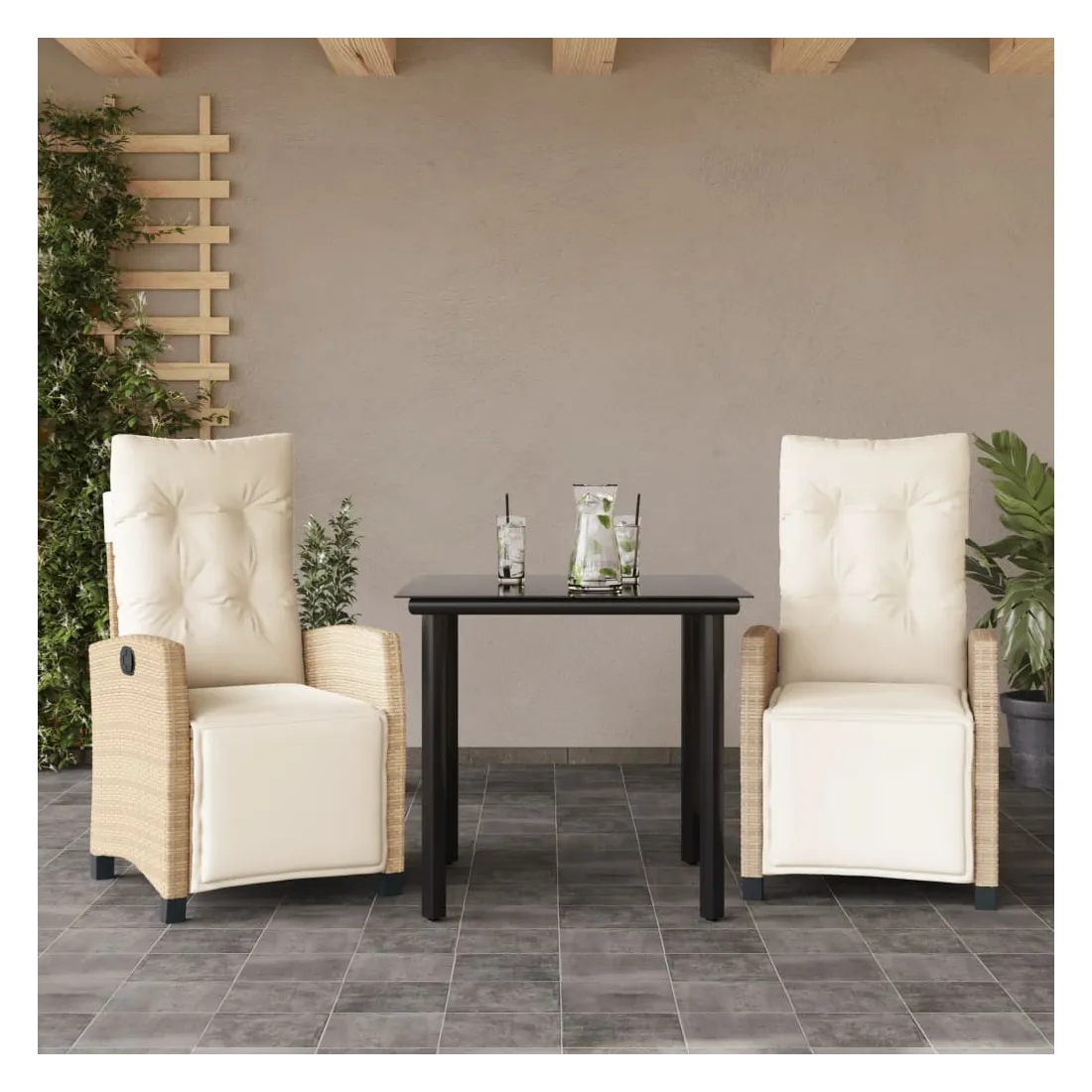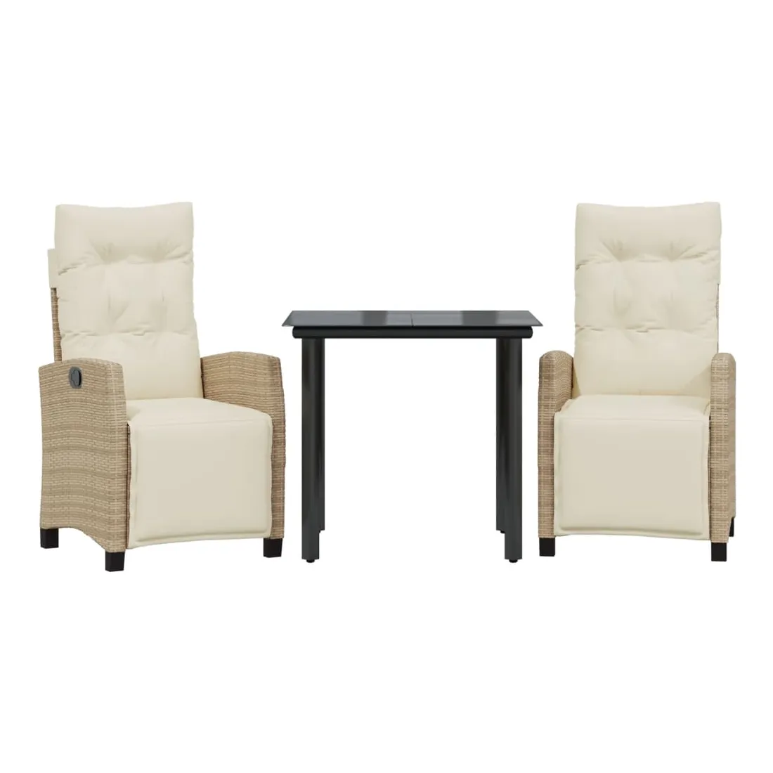 Ensemble à manger de jardin et coussins 3 pcs Beige poly rotin