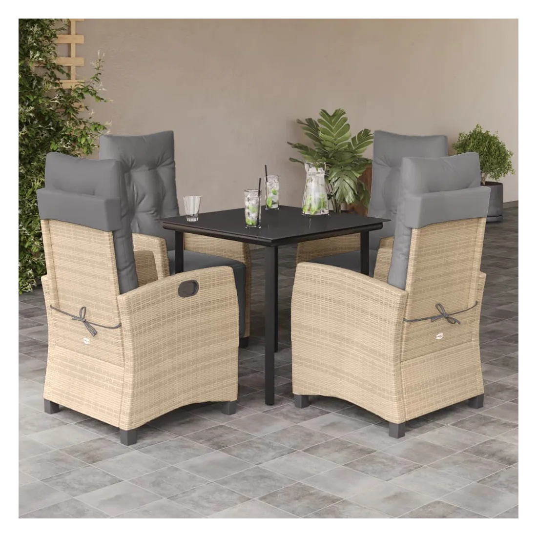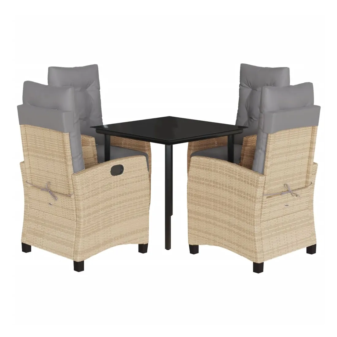 Ensemble à manger de jardin coussins 5 pcs mélange beige rotin