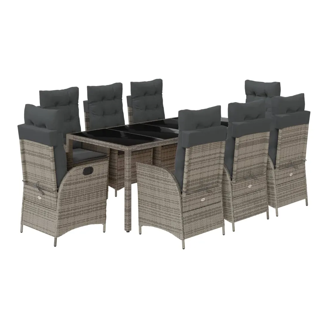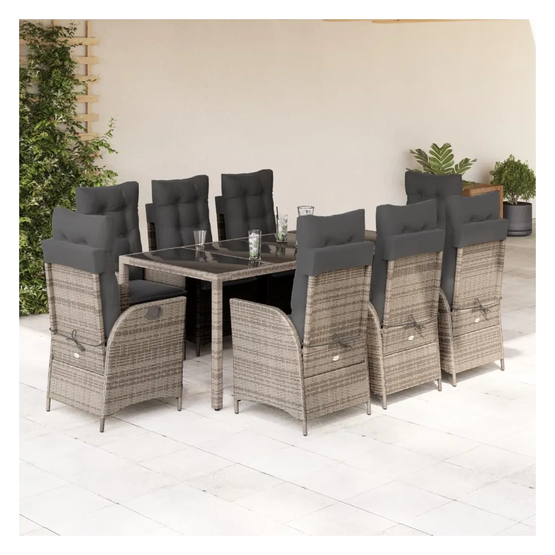 Cet ensemble de salle à manger de jardin est un excellent choix pour les repas en plein air ou pour vous détendre dans le jardin, dans l'arrière-cour ou sur la terrasse. Matériau durable : la résine tressée, également connue sous le nom de poly rotin, est un matériau synthétique solide et nécessitant peu d'entretien qui ressemble au rotin naturel. Il est léger, facile à nettoyer et couramment utilisé pour les meubles d'extérieur en raison de sa durabilité et de ses propriétés de résistance aux intempéries.Dossier réglable : ce siège de jardin est doté d'une poignée. Vous pouvez régler le dossier dans n'importe quelle position en tirant sur la poignée et le remettre rapidement dans sa position initiale.Expérience d'assise confortable : ce mobilier d'extérieur, doté de coussins épais, offre une expérience d'assise confortable.Housse amovible et lavable : ces coussins de siège sont dotés de housses amovibles pour un lavage et un entretien faciles. Les coussins de dossier ont un rabat à l'arrière pour une fixation facile aux dossiers.Dessus en verre : le dessus de la table d'extérieur est fabriqué en verre trempé solide et durable, ce qui le rend facile à nettoyer avec un chiffon humide et ajoute une touche d'élégance à votre espace extérieur. Bon à savoir : Pour que vos meubles d'extérieur restent beaux, nous vous recommandons de les protéger avec une housse imperméable.