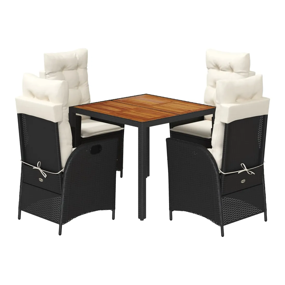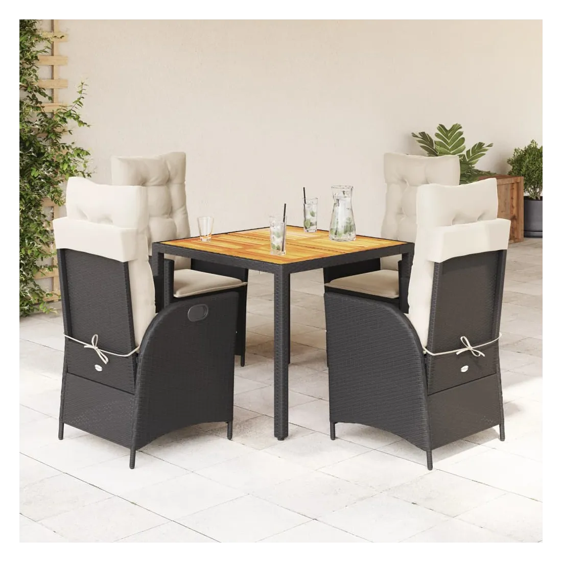 Cet ensemble de salle à manger de jardin est un excellent choix pour les repas en plein air ou pour vous détendre dans le jardin, dans l'arrière-cour ou sur la terrasse. Matériau durable : la résine tressée, également connue sous le nom de poly rotin, est un matériau synthétique solide et nécessitant peu d'entretien qui ressemble au rotin naturel. Il est léger, facile à nettoyer et couramment utilisé pour les meubles d'extérieur en raison de sa durabilité et de ses propriétés de résistance aux intempéries.Dossier réglable : ce siège de jardin est doté d'une poignée. Vous pouvez régler le dossier dans n'importe quelle position en tirant sur la poignée et le remettre rapidement dans sa position initiale.Expérience d'assise confortable : ce mobilier d'extérieur, doté de coussins épais, offre une expérience d'assise confortable.Housse amovible et lavable : ces coussins de siège sont dotés de housses amovibles pour un lavage et un entretien faciles. Les coussins de dossier ont un rabat à l'arrière pour une fixation facile aux dossiers.Dessus stable et facile à nettoyer : cette table de jardin a un dessus en bois d'acacia robuste, durable et facile à nettoyer avec un chiffon humide. Bon à savoir : Pour que vos meubles d'extérieur restent beaux, nous vous recommandons de les protéger avec une housse imperméable.