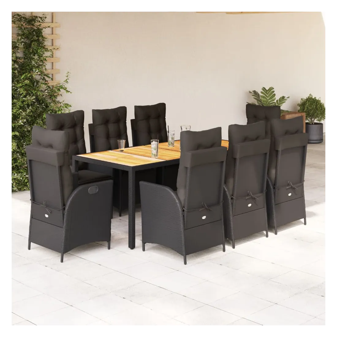 Cet ensemble de salle à manger de jardin est un excellent choix pour les repas en plein air ou pour vous détendre dans le jardin, dans l'arrière-cour ou sur la terrasse. Matériau durable : la résine tressée, également connue sous le nom de poly rotin, est un matériau synthétique solide et nécessitant peu d'entretien qui ressemble au rotin naturel. Il est léger, facile à nettoyer et couramment utilisé pour les meubles d'extérieur en raison de sa durabilité et de ses propriétés de résistance aux intempéries.Dossier réglable : ce siège de jardin est doté d'une poignée. Vous pouvez régler le dossier dans n'importe quelle position en tirant sur la poignée et le remettre rapidement dans sa position initiale.Expérience d'assise confortable : ce mobilier d'extérieur, doté de coussins épais, offre une expérience d'assise confortable.Housse amovible et lavable : ces coussins de siège sont dotés de housses amovibles pour un lavage et un entretien faciles. Les coussins de dossier ont un rabat à l'arrière pour une fixation facile aux dossiers.Dessus stable et facile à nettoyer : cette table de jardin a un dessus en bois d'acacia robuste, durable et facile à nettoyer avec un chiffon humide. Bon à savoir : Pour que vos meubles d'extérieur restent beaux, nous vous recommandons de les protéger avec une housse imperméable.