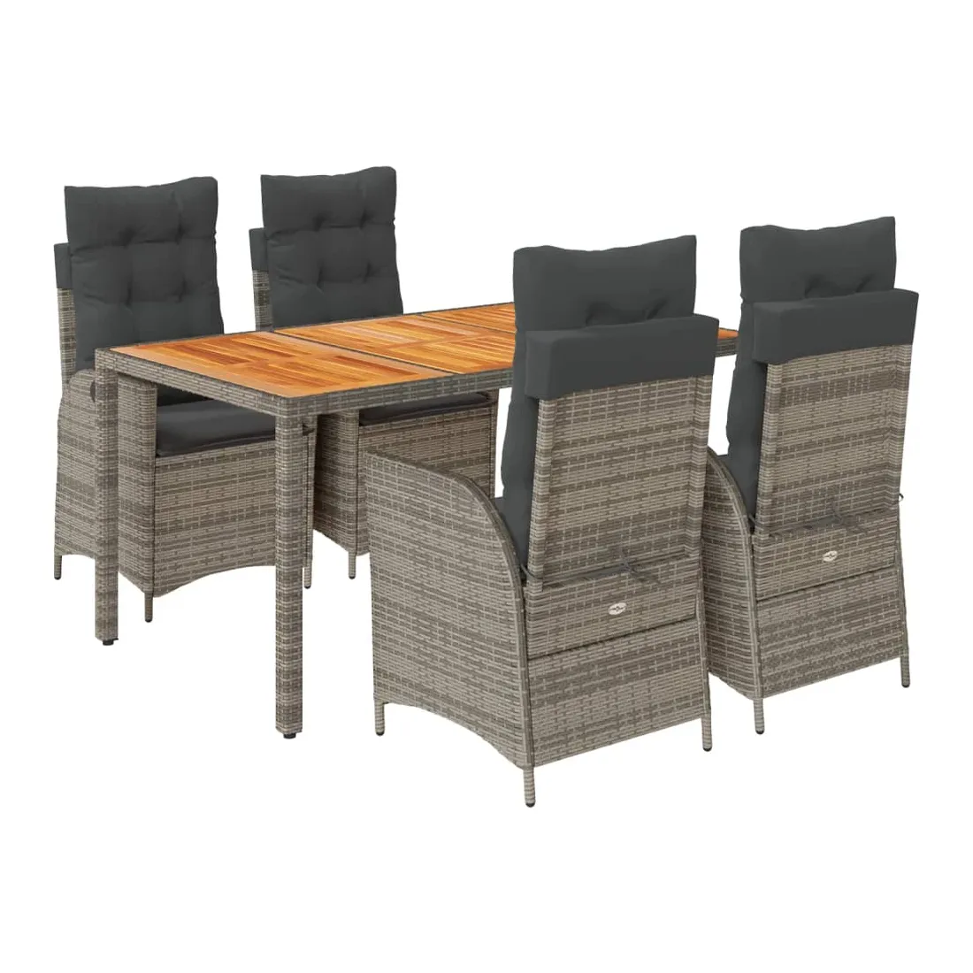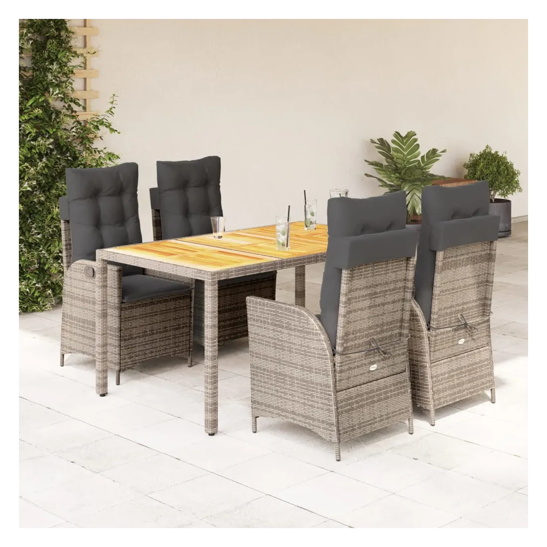 Cet ensemble de salle à manger de jardin est un excellent choix pour les repas en plein air ou pour vous détendre dans le jardin, dans l'arrière-cour ou sur la terrasse. Matériau durable : la résine tressée, également connue sous le nom de poly rotin, est un matériau synthétique solide et nécessitant peu d'entretien qui ressemble au rotin naturel. Il est léger, facile à nettoyer et couramment utilisé pour les meubles d'extérieur en raison de sa durabilité et de ses propriétés de résistance aux intempéries.Dossier réglable : ce siège de jardin est doté d'une poignée. Vous pouvez régler le dossier dans n'importe quelle position en tirant sur la poignée et le remettre rapidement dans sa position initiale.Expérience d'assise confortable : ce mobilier d'extérieur, doté de coussins épais, offre une expérience d'assise confortable.Housse amovible et lavable : ces coussins de siège sont dotés de housses amovibles pour un lavage et un entretien faciles. Les coussins de dossier ont un rabat à l'arrière pour une fixation facile aux dossiers.Dessus stable et facile à nettoyer : cette table de jardin a un dessus en bois d'acacia robuste, durable et facile à nettoyer avec un chiffon humide. Bon à savoir : Pour que vos meubles d'extérieur restent beaux, nous vous recommandons de les protéger avec une housse imperméable.