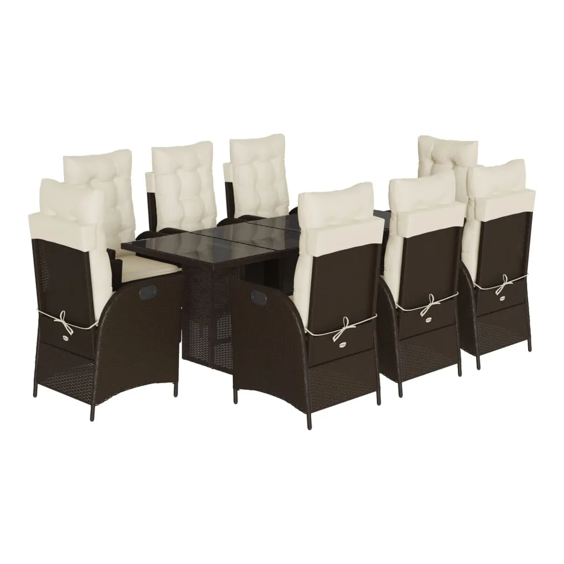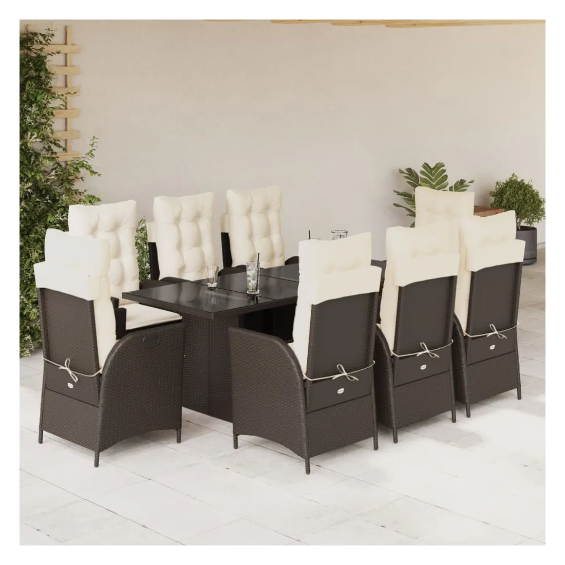 Cet ensemble de salle à manger de jardin est un excellent choix pour les repas en plein air ou pour vous détendre dans le jardin, dans l'arrière-cour ou sur la terrasse. Matériau durable : la résine tressée, également connue sous le nom de poly rotin, est un matériau synthétique solide et nécessitant peu d'entretien qui ressemble au rotin naturel. Il est léger, facile à nettoyer et couramment utilisé pour les meubles d'extérieur en raison de sa durabilité et de ses propriétés de résistance aux intempéries.Dossier réglable : ce siège de jardin est doté d'une poignée. Vous pouvez régler le dossier dans n'importe quelle position en tirant sur la poignée et le remettre rapidement dans sa position initiale.Expérience d'assise confortable : ce mobilier d'extérieur, doté de coussins épais, offre une expérience d'assise confortable.Housse amovible et lavable : ces coussins de siège sont dotés de housses amovibles pour un lavage et un entretien faciles. Les coussins de dossier ont un rabat à l'arrière pour une fixation facile aux dossiers.Dessus en verre : le dessus de la table d'extérieur est fabriqué en verre trempé solide et durable, ce qui le rend facile à nettoyer avec un chiffon humide et ajoute une touche d'élégance à votre espace extérieur. Bon à savoir : Pour que vos meubles d'extérieur restent beaux, nous vous recommandons de les protéger avec une housse imperméable.