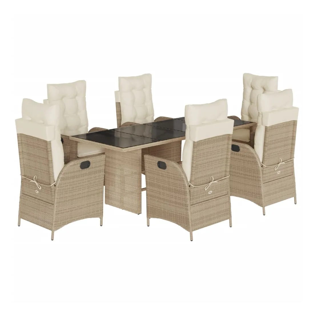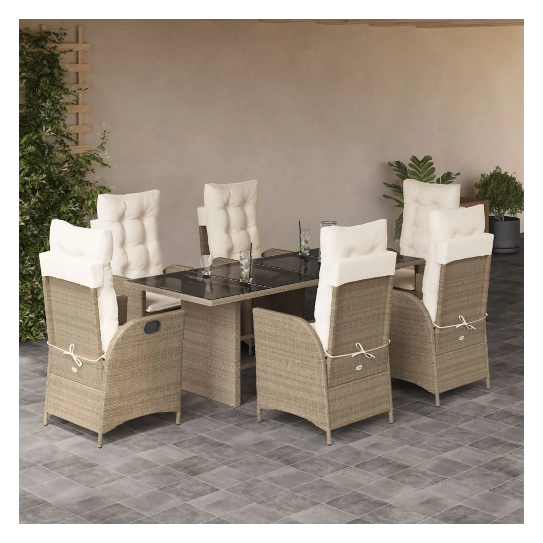 Cet ensemble de salle à manger de jardin est un excellent choix pour les repas en plein air ou pour vous détendre dans le jardin, dans l'arrière-cour ou sur la terrasse. Matériau durable : la résine tressée, également connue sous le nom de poly rotin, est un matériau synthétique solide et nécessitant peu d'entretien qui ressemble au rotin naturel. Il est léger, facile à nettoyer et couramment utilisé pour les meubles d'extérieur en raison de sa durabilité et de ses propriétés de résistance aux intempéries.Dossier réglable : ce siège de jardin est doté d'une poignée. Vous pouvez régler le dossier dans n'importe quelle position en tirant sur la poignée et le remettre rapidement dans sa position initiale.Expérience d'assise confortable : ce mobilier d'extérieur, doté de coussins épais, offre une expérience d'assise confortable.Housse amovible et lavable : ces coussins de siège sont dotés de housses amovibles pour un lavage et un entretien faciles. Les coussins de dossier ont un rabat à l'arrière pour une fixation facile aux dossiers.Dessus en verre : le dessus de la table d'extérieur est fabriqué en verre trempé solide et durable, ce qui le rend facile à nettoyer avec un chiffon humide et ajoute une touche d'élégance à votre espace extérieur. Bon à savoir : Pour que vos meubles d'extérieur restent beaux, nous vous recommandons de les protéger avec une housse imperméable.