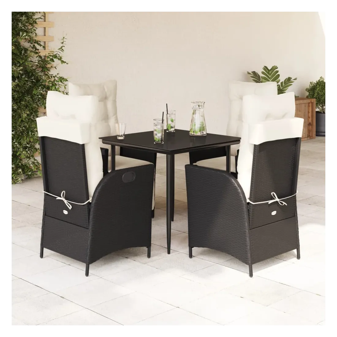 Cet ensemble de salle à manger de jardin est un excellent choix pour les repas en plein air ou pour vous détendre dans le jardin, dans l'arrière-cour ou sur la terrasse. Matériau durable : la résine tressée, également connue sous le nom de poly rotin, est un matériau synthétique solide et nécessitant peu d'entretien qui ressemble au rotin naturel. Il est léger, facile à nettoyer et couramment utilisé pour les meubles d'extérieur en raison de sa durabilité et de ses propriétés de résistance aux intempéries.Dossier réglable : ce siège de jardin est doté d'une poignée. Vous pouvez régler le dossier dans n'importe quelle position en tirant sur la poignée et le remettre rapidement dans sa position initiale.Expérience d'assise confortable : ce mobilier d'extérieur, doté de coussins épais, offre une expérience d'assise confortable.Housse amovible et lavable : ces coussins de siège sont dotés de housses amovibles pour un lavage et un entretien faciles. Les coussins de dossier ont un rabat à l'arrière pour une fixation facile aux dossiers.Dessus en verre : le dessus de la table d'extérieur est fabriqué en verre trempé solide et durable, ce qui le rend facile à nettoyer avec un chiffon humide et ajoute une touche d'élégance à votre espace extérieur. Bon à savoir : Pour que vos meubles d'extérieur restent beaux, nous vous recommandons de les protéger avec une housse imperméable.