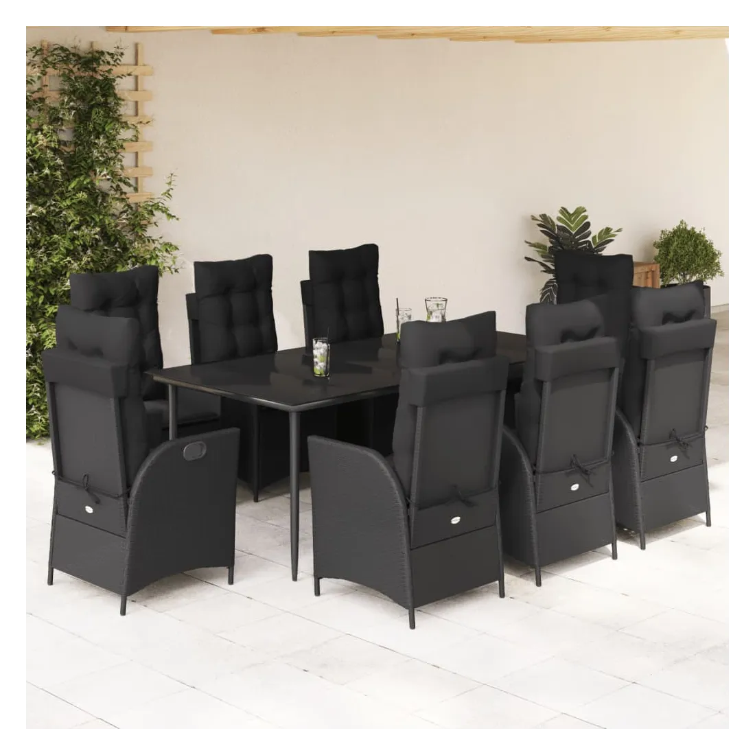 Cet ensemble de salle à manger de jardin est un excellent choix pour les repas en plein air ou pour vous détendre dans le jardin, dans l'arrière-cour ou sur la terrasse. Matériau durable : la résine tressée, également connue sous le nom de poly rotin, est un matériau synthétique solide et nécessitant peu d'entretien qui ressemble au rotin naturel. Il est léger, facile à nettoyer et couramment utilisé pour les meubles d'extérieur en raison de sa durabilité et de ses propriétés de résistance aux intempéries.Dossier réglable : ce siège de jardin est doté d'une poignée. Vous pouvez régler le dossier dans n'importe quelle position en tirant sur la poignée et le remettre rapidement dans sa position initiale.Expérience d'assise confortable : ce mobilier d'extérieur, doté de coussins épais, offre une expérience d'assise confortable.Housse amovible et lavable : ces coussins de siège sont dotés de housses amovibles pour un lavage et un entretien faciles. Les coussins de dossier ont un rabat à l'arrière pour une fixation facile aux dossiers.Dessus en verre : le dessus de la table d'extérieur est fabriqué en verre trempé solide et durable, ce qui le rend facile à nettoyer avec un chiffon humide et ajoute une touche d'élégance à votre espace extérieur. Bon à savoir : Pour que vos meubles d'extérieur restent beaux, nous vous recommandons de les protéger avec une housse imperméable.