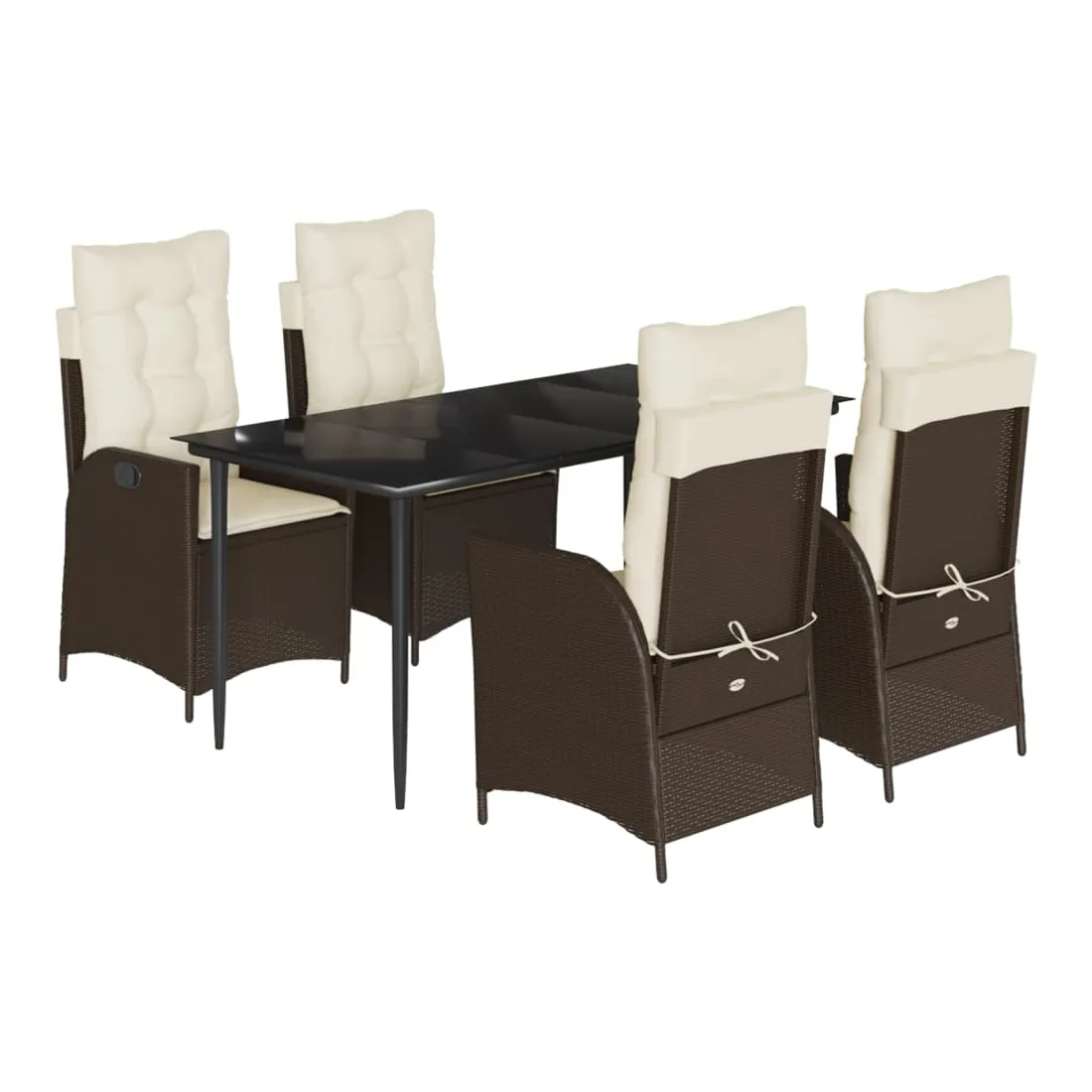 Cet ensemble de salle à manger de jardin est un excellent choix pour les repas en plein air ou pour vous détendre dans le jardin, dans l'arrière-cour ou sur la terrasse. Matériau durable : la résine tressée, également connue sous le nom de poly rotin, est un matériau synthétique solide et nécessitant peu d'entretien qui ressemble au rotin naturel. Il est léger, facile à nettoyer et couramment utilisé pour les meubles d'extérieur en raison de sa durabilité et de ses propriétés de résistance aux intempéries.Dossier réglable : ce siège de jardin est doté d'une poignée. Vous pouvez régler le dossier dans n'importe quelle position en tirant sur la poignée et le remettre rapidement dans sa position initiale.Expérience d'assise confortable : ce mobilier d'extérieur, doté de coussins épais, offre une expérience d'assise confortable.Housse amovible et lavable : ces coussins de siège sont dotés de housses amovibles pour un lavage et un entretien faciles. Les coussins de dossier ont un rabat à l'arrière pour une fixation facile aux dossiers.Dessus en verre : le dessus de la table d'extérieur est fabriqué en verre trempé solide et durable, ce qui le rend facile à nettoyer avec un chiffon humide et ajoute une touche d'élégance à votre espace extérieur. Bon à savoir : Pour que vos meubles d'extérieur restent beaux, nous vous recommandons de les protéger avec une housse imperméable.