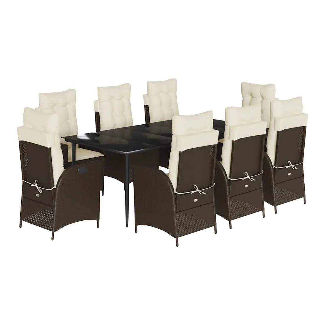 Cet ensemble de salle à manger de jardin est un excellent choix pour les repas en plein air ou pour vous détendre dans le jardin, dans l'arrière-cour ou sur la terrasse. Matériau durable : la résine tressée, également connue sous le nom de poly rotin, est un matériau synthétique solide et nécessitant peu d'entretien qui ressemble au rotin naturel. Il est léger, facile à nettoyer et couramment utilisé pour les meubles d'extérieur en raison de sa durabilité et de ses propriétés de résistance aux intempéries.Dossier réglable : ce siège de jardin est doté d'une poignée. Vous pouvez régler le dossier dans n'importe quelle position en tirant sur la poignée et le remettre rapidement dans sa position initiale.Expérience d'assise confortable : ce mobilier d'extérieur, doté de coussins épais, offre une expérience d'assise confortable.Housse amovible et lavable : ces coussins de siège sont dotés de housses amovibles pour un lavage et un entretien faciles. Les coussins de dossier ont un rabat à l'arrière pour une fixation facile aux dossiers.Dessus en verre : le dessus de la table d'extérieur est fabriqué en verre trempé solide et durable, ce qui le rend facile à nettoyer avec un chiffon humide et ajoute une touche d'élégance à votre espace extérieur. Bon à savoir : Pour que vos meubles d'extérieur restent beaux, nous vous recommandons de les protéger avec une housse imperméable.