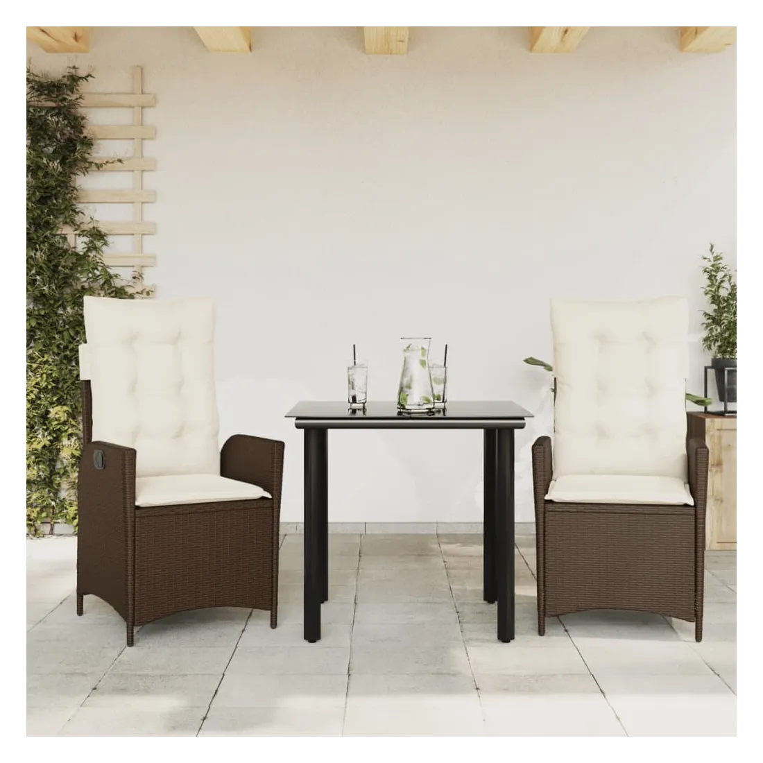 Cet ensemble de salle à manger de jardin est un excellent choix pour les repas en plein air ou pour vous détendre dans le jardin, dans l'arrière-cour ou sur la terrasse. Matériau durable : la résine tressée, également connue sous le nom de poly rotin, est un matériau synthétique solide et nécessitant peu d'entretien qui ressemble au rotin naturel. Il est léger, facile à nettoyer et couramment utilisé pour les meubles d'extérieur en raison de sa durabilité et de ses propriétés de résistance aux intempéries.Dossier réglable : ce siège de jardin est doté d'une poignée. Vous pouvez régler le dossier dans n'importe quelle position en tirant sur la poignée et le remettre rapidement dans sa position initiale.Expérience d'assise confortable : ce mobilier d'extérieur, doté de coussins épais, offre une expérience d'assise confortable.Housse amovible et lavable : ces coussins de siège sont dotés de housses amovibles pour un lavage et un entretien faciles. Les coussins de dossier ont un rabat à l'arrière pour une fixation facile aux dossiers.Dessus en verre : le dessus de la table d'extérieur est fabriqué en verre trempé solide et durable, ce qui le rend facile à nettoyer avec un chiffon humide et ajoute une touche d'élégance à votre espace extérieur. Bon à savoir : Pour que vos meubles d'extérieur restent beaux, nous vous recommandons de les protéger avec une housse imperméable.