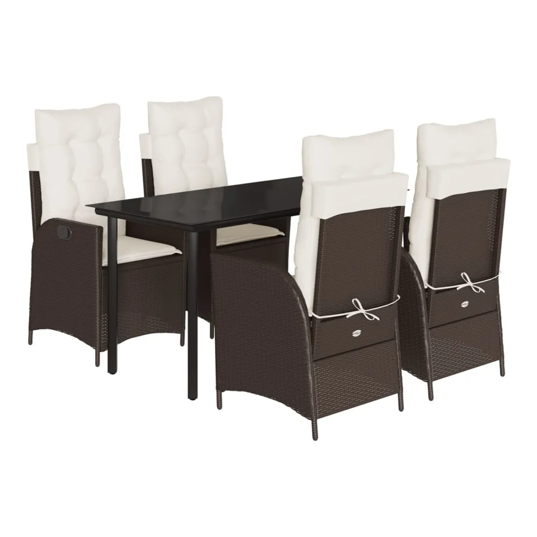 Ensemble à manger de jardin 5 pcs et coussins marron poly rotin