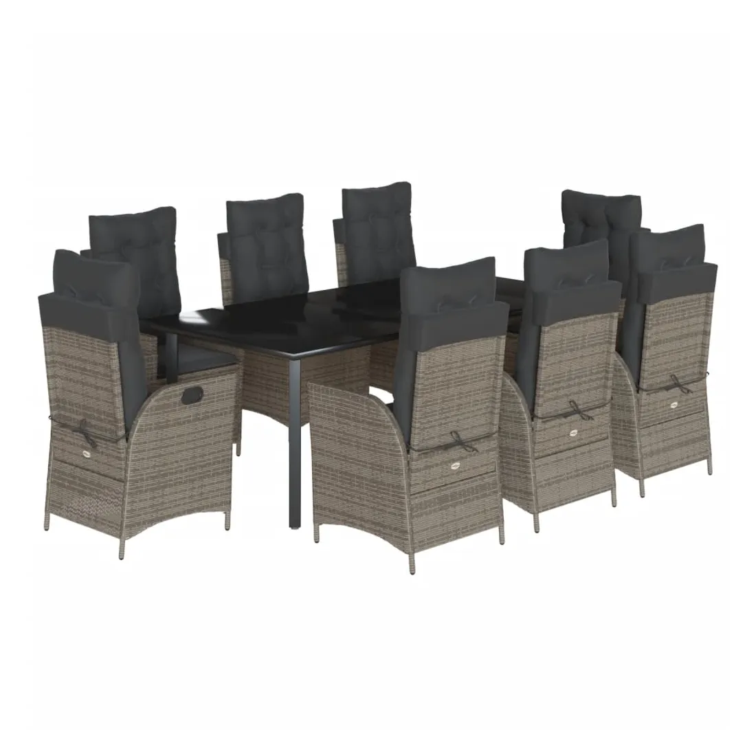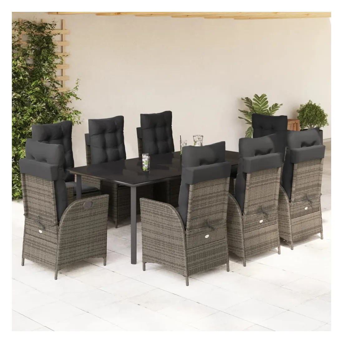 Cet ensemble de salle à manger de jardin est un excellent choix pour les repas en plein air ou pour vous détendre dans le jardin, dans l'arrière-cour ou sur la terrasse. Matériau durable : la résine tressée, également connue sous le nom de poly rotin, est un matériau synthétique solide et nécessitant peu d'entretien qui ressemble au rotin naturel. Il est léger, facile à nettoyer et couramment utilisé pour les meubles d'extérieur en raison de sa durabilité et de ses propriétés de résistance aux intempéries.Dossier réglable : ce siège de jardin est doté d'une poignée. Vous pouvez régler le dossier dans n'importe quelle position en tirant sur la poignée et le remettre rapidement dans sa position initiale.Expérience d'assise confortable : ce mobilier d'extérieur, doté de coussins épais, offre une expérience d'assise confortable.Housse amovible et lavable : ces coussins de siège sont dotés de housses amovibles pour un lavage et un entretien faciles. Les coussins de dossier ont un rabat à l'arrière pour une fixation facile aux dossiers.Dessus en verre : le dessus de la table d'extérieur est fabriqué en verre trempé solide et durable, ce qui le rend facile à nettoyer avec un chiffon humide et ajoute une touche d'élégance à votre espace extérieur. Bon à savoir : Pour que vos meubles d'extérieur restent beaux, nous vous recommandons de les protéger avec une housse imperméable.