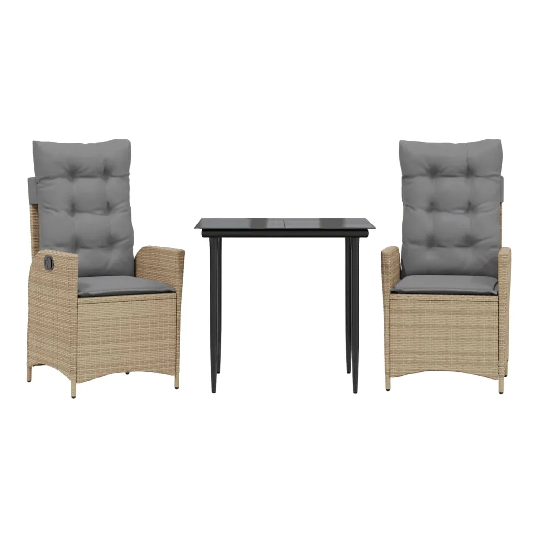 Cet ensemble de salle à manger de jardin est un excellent choix pour les repas en plein air ou pour vous détendre dans le jardin, dans l'arrière-cour ou sur la terrasse. Matériau durable : la résine tressée, également connue sous le nom de poly rotin, est un matériau synthétique solide et nécessitant peu d'entretien qui ressemble au rotin naturel. Il est léger, facile à nettoyer et couramment utilisé pour les meubles d'extérieur en raison de sa durabilité et de ses propriétés de résistance aux intempéries.Dossier réglable : ce siège de jardin est doté d'une poignée. Vous pouvez régler le dossier dans n'importe quelle position en tirant sur la poignée et le remettre rapidement dans sa position initiale.Expérience d'assise confortable : ce mobilier d'extérieur, doté de coussins épais, offre une expérience d'assise confortable.Housse amovible et lavable : ces coussins de siège sont dotés de housses amovibles pour un lavage et un entretien faciles. Les coussins de dossier ont un rabat à l'arrière pour une fixation facile aux dossiers.Dessus en verre : le dessus de la table d'extérieur est fabriqué en verre trempé solide et durable, ce qui le rend facile à nettoyer avec un chiffon humide et ajoute une touche d'élégance à votre espace extérieur. Bon à savoir : Pour que vos meubles d'extérieur restent beaux, nous vous recommandons de les protéger avec une housse imperméable.