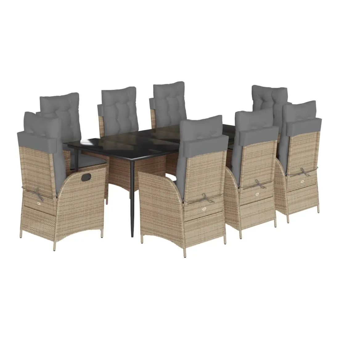 Cet ensemble de salle à manger de jardin est un excellent choix pour les repas en plein air ou pour vous détendre dans le jardin, dans l'arrière-cour ou sur la terrasse. Matériau durable : la résine tressée, également connue sous le nom de poly rotin, est un matériau synthétique solide et nécessitant peu d'entretien qui ressemble au rotin naturel. Il est léger, facile à nettoyer et couramment utilisé pour les meubles d'extérieur en raison de sa durabilité et de ses propriétés de résistance aux intempéries.Dossier réglable : ce siège de jardin est doté d'une poignée. Vous pouvez régler le dossier dans n'importe quelle position en tirant sur la poignée et le remettre rapidement dans sa position initiale.Expérience d'assise confortable : ce mobilier d'extérieur, doté de coussins épais, offre une expérience d'assise confortable.Housse amovible et lavable : ces coussins de siège sont dotés de housses amovibles pour un lavage et un entretien faciles. Les coussins de dossier ont un rabat à l'arrière pour une fixation facile aux dossiers.Dessus en verre : le dessus de la table d'extérieur est fabriqué en verre trempé solide et durable, ce qui le rend facile à nettoyer avec un chiffon humide et ajoute une touche d'élégance à votre espace extérieur. Bon à savoir : Pour que vos meubles d'extérieur restent beaux, nous vous recommandons de les protéger avec une housse imperméable.
