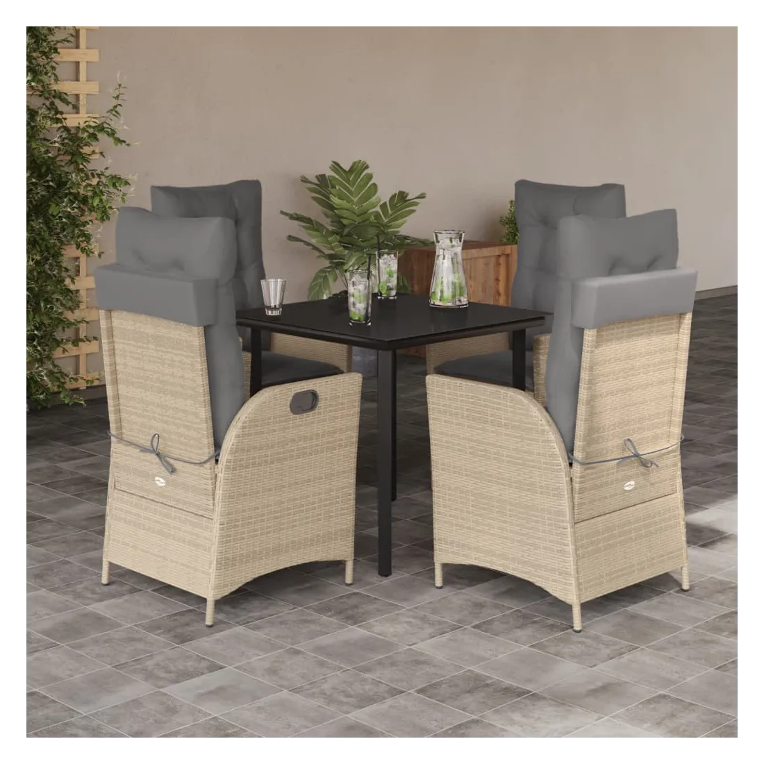 Cet ensemble de salle à manger de jardin est un excellent choix pour les repas en plein air ou pour vous détendre dans le jardin, dans l'arrière-cour ou sur la terrasse. Matériau durable : la résine tressée, également connue sous le nom de poly rotin, est un matériau synthétique solide et nécessitant peu d'entretien qui ressemble au rotin naturel. Il est léger, facile à nettoyer et couramment utilisé pour les meubles d'extérieur en raison de sa durabilité et de ses propriétés de résistance aux intempéries.Dossier réglable : ce siège de jardin est doté d'une poignée. Vous pouvez régler le dossier dans n'importe quelle position en tirant sur la poignée et le remettre rapidement dans sa position initiale.Expérience d'assise confortable : ce mobilier d'extérieur, doté de coussins épais, offre une expérience d'assise confortable.Housse amovible et lavable : ces coussins de siège sont dotés de housses amovibles pour un lavage et un entretien faciles. Les coussins de dossier ont un rabat à l'arrière pour une fixation facile aux dossiers.Dessus en verre : le dessus de la table d'extérieur est fabriqué en verre trempé solide et durable, ce qui le rend facile à nettoyer avec un chiffon humide et ajoute une touche d'élégance à votre espace extérieur. Bon à savoir : Pour que vos meubles d'extérieur restent beaux, nous vous recommandons de les protéger avec une housse imperméable.