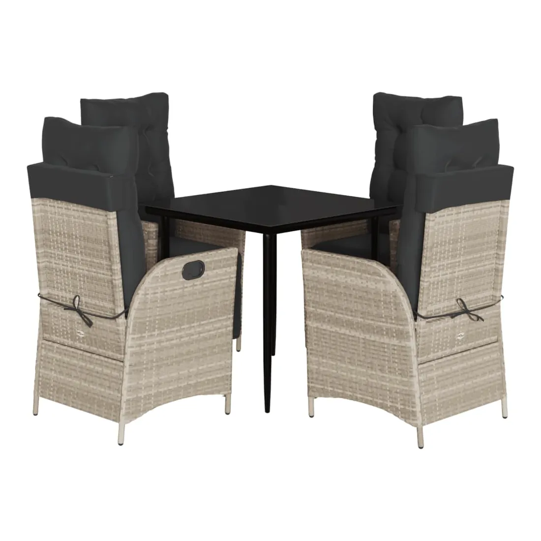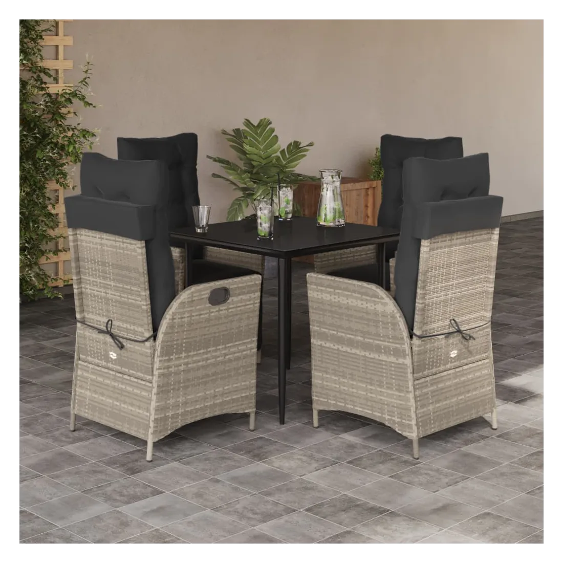 Cet ensemble de salle à manger de jardin est un excellent choix pour les repas en plein air ou pour vous détendre dans le jardin, dans l'arrière-cour ou sur la terrasse. Matériau durable : la résine tressée, également connue sous le nom de poly rotin, est un matériau synthétique solide et nécessitant peu d'entretien qui ressemble au rotin naturel. Il est léger, facile à nettoyer et couramment utilisé pour les meubles d'extérieur en raison de sa durabilité et de ses propriétés de résistance aux intempéries.Dossier réglable : ce siège de jardin est doté d'une poignée. Vous pouvez régler le dossier dans n'importe quelle position en tirant sur la poignée et le remettre rapidement dans sa position initiale.Expérience d'assise confortable : ce mobilier d'extérieur, doté de coussins épais, offre une expérience d'assise confortable.Housse amovible et lavable : ces coussins de siège sont dotés de housses amovibles pour un lavage et un entretien faciles. Les coussins de dossier ont un rabat à l'arrière pour une fixation facile aux dossiers.Dessus en verre : le dessus de la table d'extérieur est fabriqué en verre trempé solide et durable, ce qui le rend facile à nettoyer avec un chiffon humide et ajoute une touche d'élégance à votre espace extérieur. Bon à savoir : Pour que vos meubles d'extérieur restent beaux, nous vous recommandons de les protéger avec une housse imperméable.