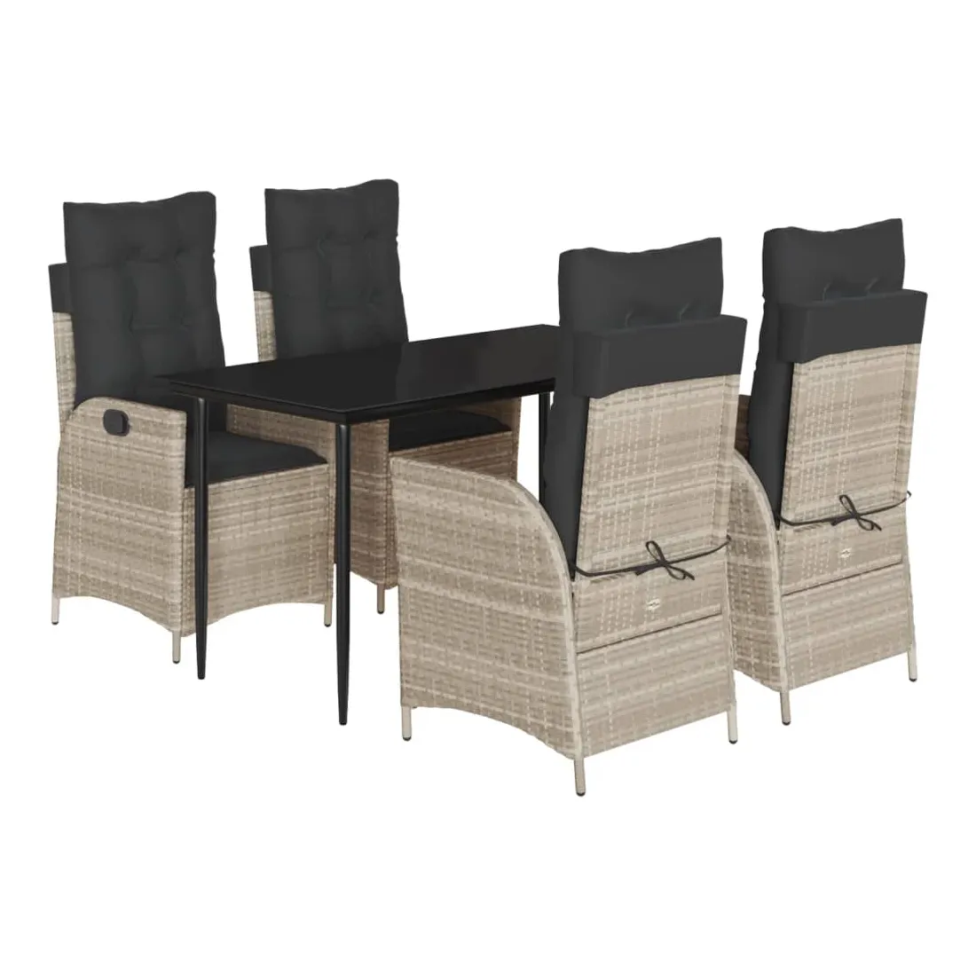 Ensemble à manger de jardin et coussins 5 pcs gris clair rotin