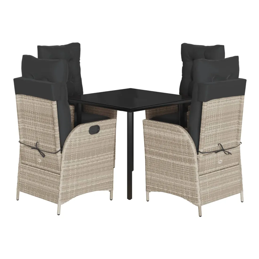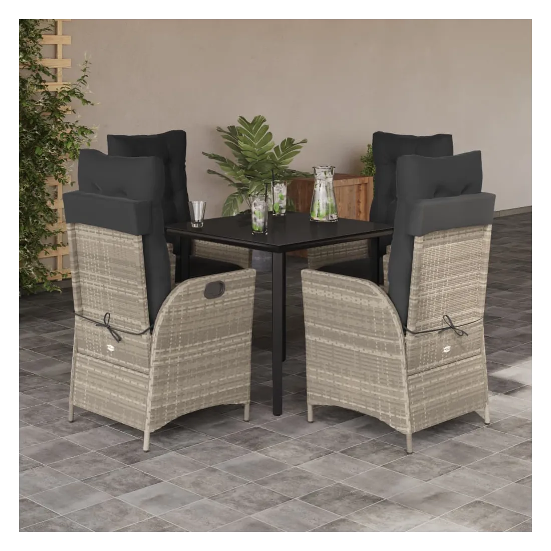 Cet ensemble de salle à manger de jardin est un excellent choix pour les repas en plein air ou pour vous détendre dans le jardin, dans l'arrière-cour ou sur la terrasse. Matériau durable : la résine tressée, également connue sous le nom de poly rotin, est un matériau synthétique solide et nécessitant peu d'entretien qui ressemble au rotin naturel. Il est léger, facile à nettoyer et couramment utilisé pour les meubles d'extérieur en raison de sa durabilité et de ses propriétés de résistance aux intempéries.Dossier réglable : ce siège de jardin est doté d'une poignée. Vous pouvez régler le dossier dans n'importe quelle position en tirant sur la poignée et le remettre rapidement dans sa position initiale.Expérience d'assise confortable : ce mobilier d'extérieur, doté de coussins épais, offre une expérience d'assise confortable.Housse amovible et lavable : ces coussins de siège sont dotés de housses amovibles pour un lavage et un entretien faciles. Les coussins de dossier ont un rabat à l'arrière pour une fixation facile aux dossiers.Dessus en verre : le dessus de la table d'extérieur est fabriqué en verre trempé solide et durable, ce qui le rend facile à nettoyer avec un chiffon humide et ajoute une touche d'élégance à votre espace extérieur. Bon à savoir : Pour que vos meubles d'extérieur restent beaux, nous vous recommandons de les protéger avec une housse imperméable.