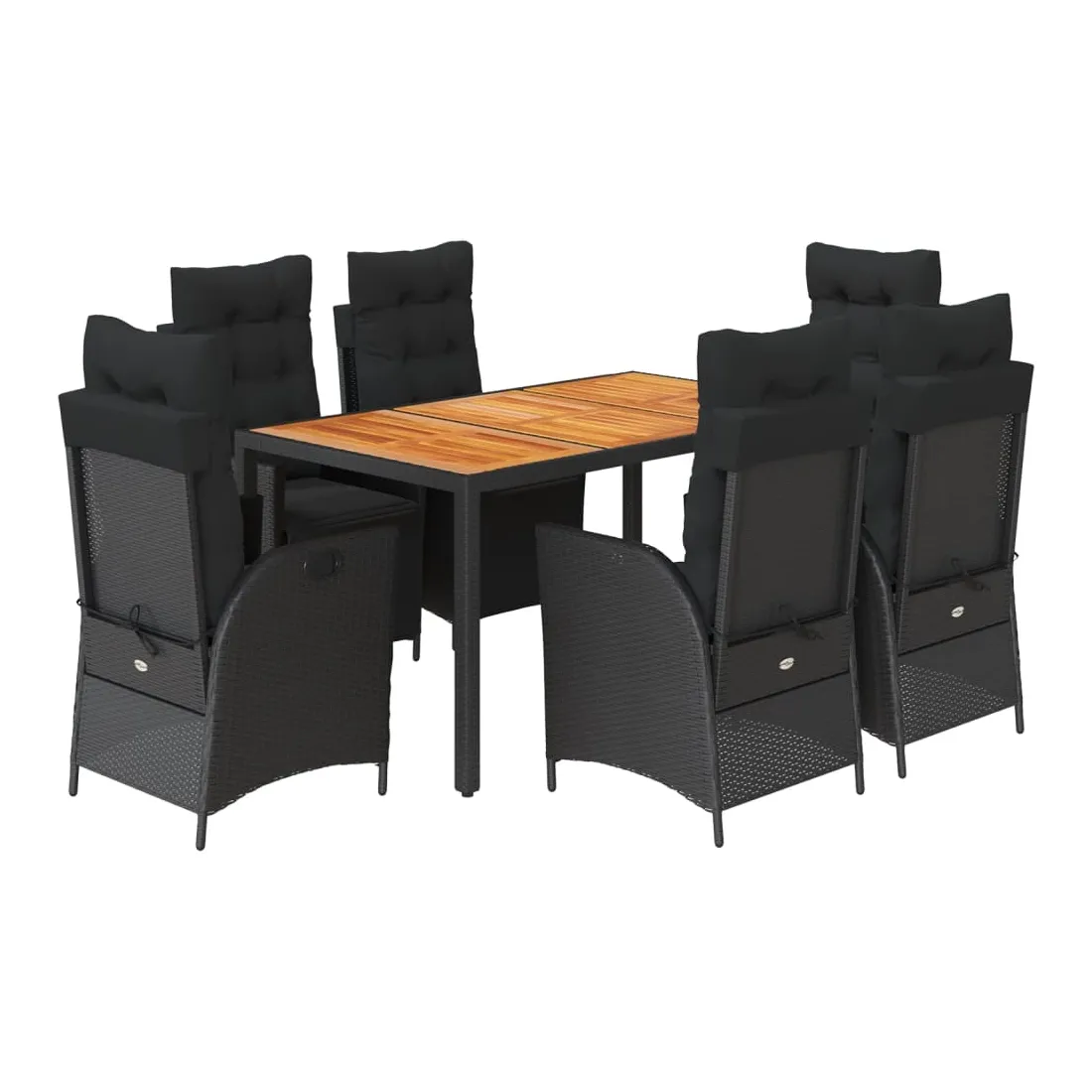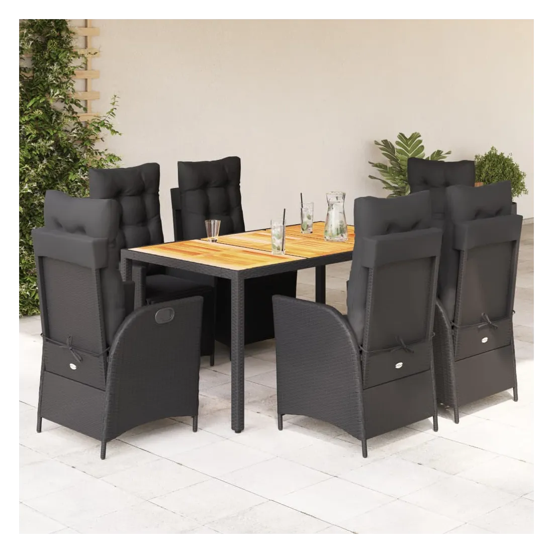 Cet ensemble de salle à manger de jardin est un excellent choix pour les repas en plein air ou pour vous détendre dans le jardin, l'arrière-cour ou le patio. Matériau durable : la résine tressée, également connue sous le nom de poly rotin, est un matériau synthétique solide et nécessitant peu d'entretien qui ressemble au rotin naturel. Il est léger, facile à nettoyer et couramment utilisé pour les meubles d'extérieur en raison de sa durabilité et de ses propriétés de résistance aux intempéries.Dossier et repose-pied réglables : ce siège de jardin est doté d'une poignée. Vous pouvez régler le dossier et le repose-pied dans n'importe quelle position en tirant sur la poignée, et les remettre rapidement dans leur position initiale.Expérience d'assise confortable : ce mobilier d'extérieur, doté de coussins épais, offre une expérience d'assise confortable.Housse amovible et lavable : ces coussins de siège sont dotés de housses amovibles pour un lavage et un entretien faciles. Les coussins de dossier ont un rabat à l'arrière pour une fixation facile aux dossiers.Dessus stable et facile à nettoyer : cette table de jardin a un dessus en bois d'acacia robuste, durable et facile à nettoyer avec un chiffon humide. Bon à savoir :Pour que vos meubles d'extérieur restent beaux, nous vous recommandons de les protéger avec une housse imperméable.