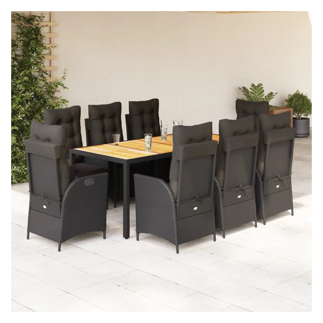 Cet ensemble de salle à manger de jardin est un excellent choix pour les repas en plein air ou pour vous détendre dans le jardin, l'arrière-cour ou le patio. Matériau durable : la résine tressée, également connue sous le nom de poly rotin, est un matériau synthétique solide et nécessitant peu d'entretien qui ressemble au rotin naturel. Il est léger, facile à nettoyer et couramment utilisé pour les meubles d'extérieur en raison de sa durabilité et de ses propriétés de résistance aux intempéries.Dossier et repose-pied réglables : ce siège de jardin est doté d'une poignée. Vous pouvez régler le dossier et le repose-pied dans n'importe quelle position en tirant sur la poignée, et les remettre rapidement dans leur position initiale.Expérience d'assise confortable : ce mobilier d'extérieur, doté de coussins épais, offre une expérience d'assise confortable.Housse amovible et lavable : ces coussins de siège sont dotés de housses amovibles pour un lavage et un entretien faciles. Les coussins de dossier ont un rabat à l'arrière pour une fixation facile aux dossiers.Dessus stable et facile à nettoyer : cette table de jardin a un dessus en bois d'acacia robuste, durable et facile à nettoyer avec un chiffon humide. Bon à savoir :Pour que vos meubles d'extérieur restent beaux, nous vous recommandons de les protéger avec une housse imperméable.