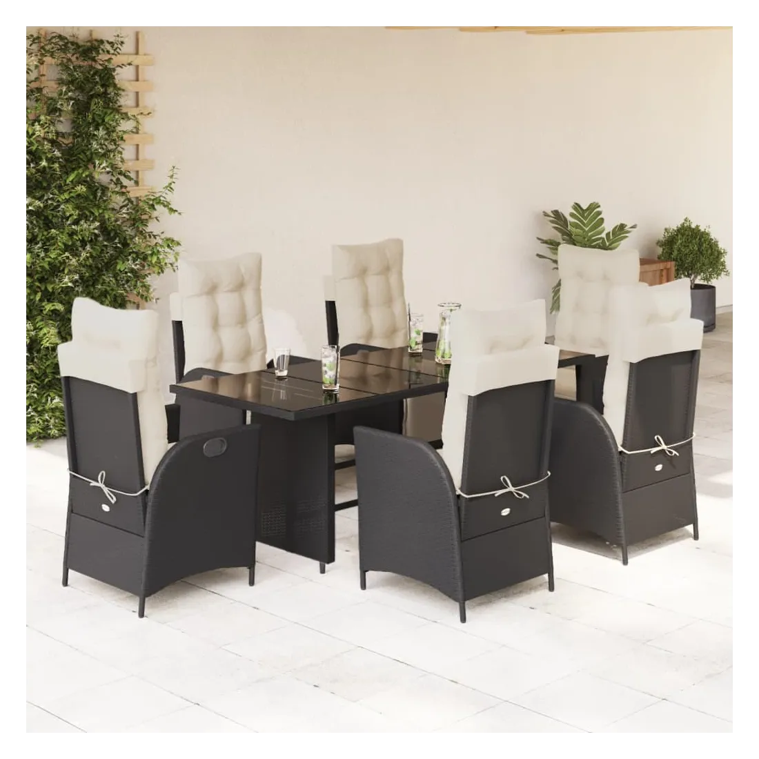 Cet ensemble de salle à manger de jardin est un excellent choix pour les repas en plein air ou pour vous détendre dans le jardin, l'arrière-cour ou le patio. Matériau durable : la résine tressée, également connue sous le nom de poly rotin, est un matériau synthétique solide et nécessitant peu d'entretien qui ressemble au rotin naturel. Il est léger, facile à nettoyer et couramment utilisé pour les meubles d'extérieur en raison de sa durabilité et de ses propriétés de résistance aux intempéries.Dossier et repose-pied réglables : ce siège de jardin est doté d'une poignée. Vous pouvez régler le dossier et le repose-pied dans n'importe quelle position en tirant sur la poignée, et les remettre rapidement dans leur position initiale.Expérience d'assise confortable : ce mobilier d'extérieur, doté de coussins épais, offre une expérience d'assise confortable.Housse amovible et lavable : ces coussins de siège sont dotés de housses amovibles pour un lavage et un entretien faciles. Les coussins de dossier ont un rabat à l'arrière pour une fixation facile aux dossiers.Dessus en verre : le dessus de la table d'extérieur est fabriqué en verre trempé solide et durable, ce qui le rend facile à nettoyer avec un chiffon humide et ajoute une touche d'élégance à votre espace extérieur. Bon à savoir :Pour que vos meubles d'extérieur restent beaux, nous vous recommandons de les protéger avec une housse imperméable.