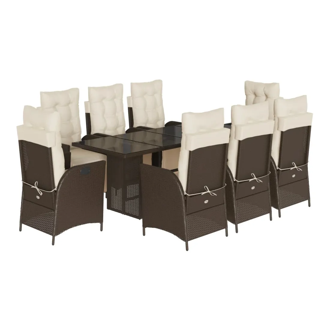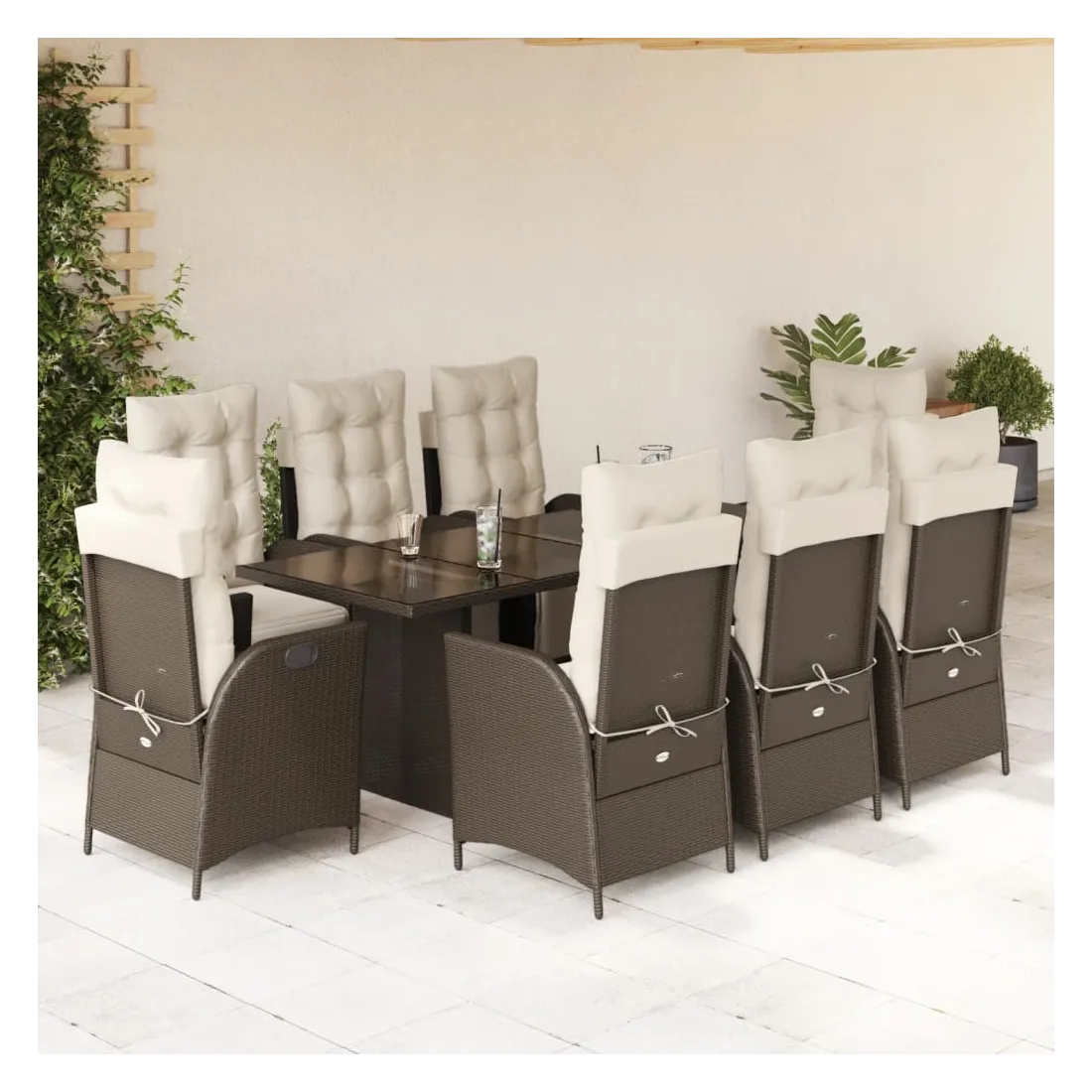 Cet ensemble de salle à manger de jardin est un excellent choix pour les repas en plein air ou pour vous détendre dans le jardin, l'arrière-cour ou le patio. Matériau durable : la résine tressée, également connue sous le nom de poly rotin, est un matériau synthétique solide et nécessitant peu d'entretien qui ressemble au rotin naturel. Il est léger, facile à nettoyer et couramment utilisé pour les meubles d'extérieur en raison de sa durabilité et de ses propriétés de résistance aux intempéries.Dossier et repose-pied réglables : ce siège de jardin est doté d'une poignée. Vous pouvez régler le dossier et le repose-pied dans n'importe quelle position en tirant sur la poignée, et les remettre rapidement dans leur position initiale.Expérience d'assise confortable : ce mobilier d'extérieur, doté de coussins épais, offre une expérience d'assise confortable.Housse amovible et lavable : ces coussins de siège sont dotés de housses amovibles pour un lavage et un entretien faciles. Les coussins de dossier ont un rabat à l'arrière pour une fixation facile aux dossiers.Dessus en verre : le dessus de la table d'extérieur est fabriqué en verre trempé solide et durable, ce qui le rend facile à nettoyer avec un chiffon humide et ajoute une touche d'élégance à votre espace extérieur. Bon à savoir :Pour que vos meubles d'extérieur restent beaux, nous vous recommandons de les protéger avec une housse imperméable.
