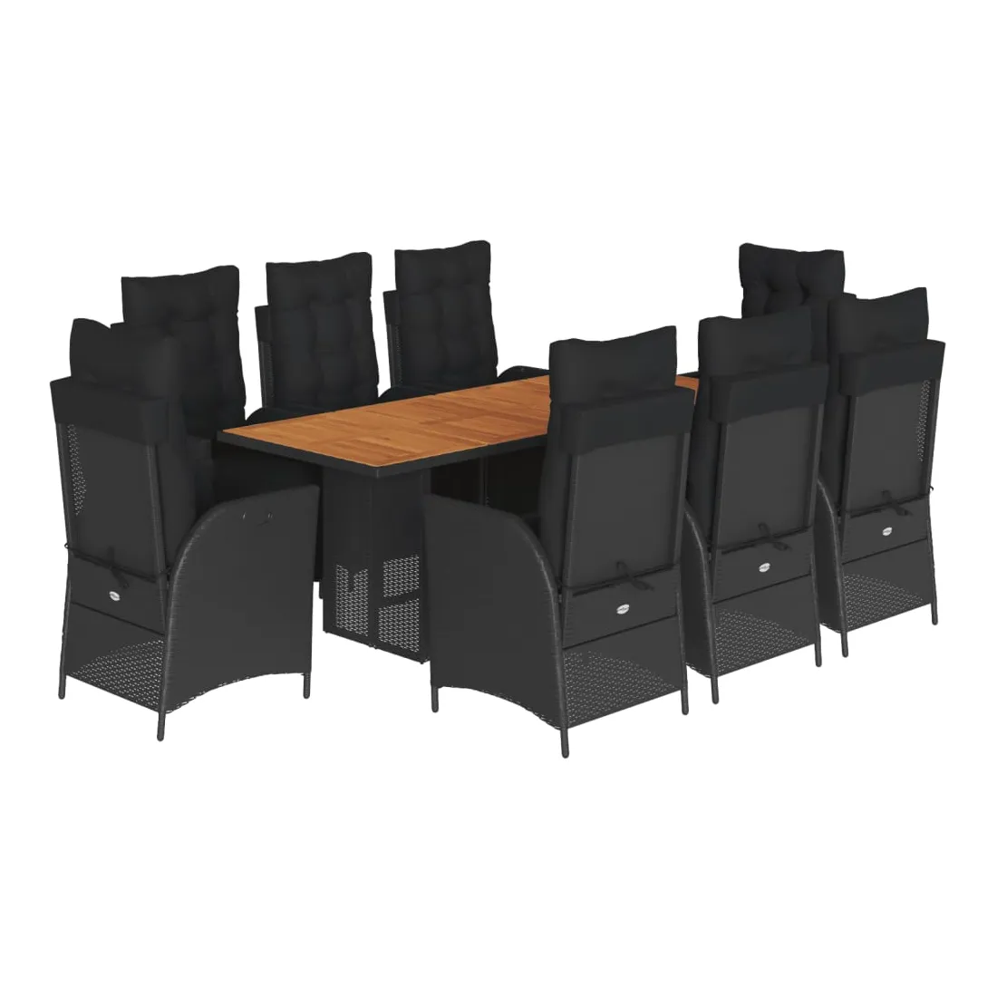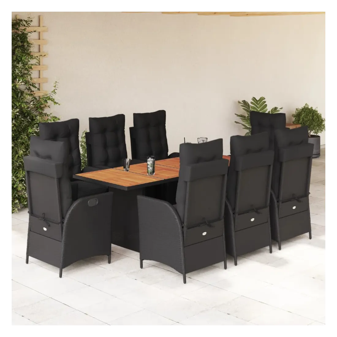 Cet ensemble de salle à manger de jardin est un excellent choix pour les repas en plein air ou pour vous détendre dans le jardin, l'arrière-cour ou le patio. Matériau durable : la résine tressée, également connue sous le nom de poly rotin, est un matériau synthétique solide et nécessitant peu d'entretien qui ressemble au rotin naturel. Il est léger, facile à nettoyer et couramment utilisé pour les meubles d'extérieur en raison de sa durabilité et de ses propriétés de résistance aux intempéries.Dossier et repose-pied réglables : ce siège de jardin est doté d'une poignée. Vous pouvez régler le dossier et le repose-pied dans n'importe quelle position en tirant sur la poignée, et les remettre rapidement dans leur position initiale.Expérience d'assise confortable : ce mobilier d'extérieur, doté de coussins épais, offre une expérience d'assise confortable.Housse amovible et lavable : ces coussins de siège sont dotés de housses amovibles pour un lavage et un entretien faciles. Les coussins de dossier ont un rabat à l'arrière pour une fixation facile aux dossiers.Dessus stable et facile à nettoyer : cette table de jardin a un dessus en bois d'acacia robuste, durable et facile à nettoyer avec un chiffon humide. Bon à savoir :Pour que vos meubles d'extérieur restent beaux, nous vous recommandons de les protéger avec une housse imperméable.