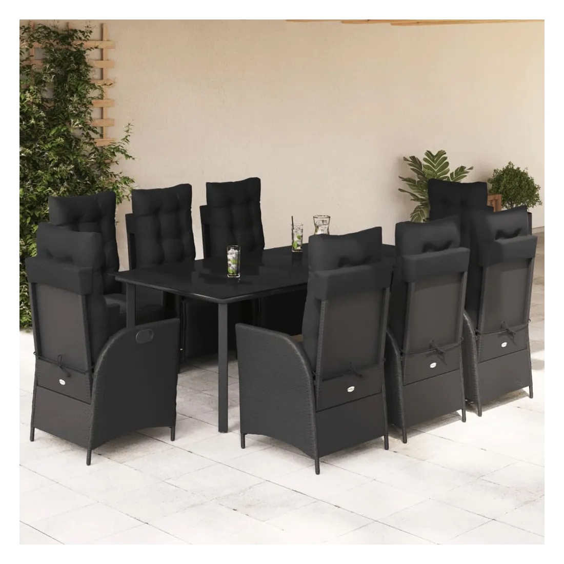 Cet ensemble de salle à manger de jardin est un excellent choix pour les repas en plein air ou pour vous détendre dans le jardin, l'arrière-cour ou le patio. Matériau durable : la résine tressée, également connue sous le nom de poly rotin, est un matériau synthétique solide et nécessitant peu d'entretien qui ressemble au rotin naturel. Il est léger, facile à nettoyer et couramment utilisé pour les meubles d'extérieur en raison de sa durabilité et de ses propriétés de résistance aux intempéries.Dossier et repose-pied réglables : ce siège de jardin est doté d'une poignée. Vous pouvez régler le dossier et le repose-pied dans n'importe quelle position en tirant sur la poignée, et les remettre rapidement dans leur position initiale.Expérience d'assise confortable : ce mobilier d'extérieur, doté de coussins épais, offre une expérience d'assise confortable.Housse amovible et lavable : ces coussins de siège sont dotés de housses amovibles pour un lavage et un entretien faciles. Les coussins de dossier ont un rabat à l'arrière pour une fixation facile aux dossiers.Dessus en verre : le dessus de la table d'extérieur est fabriqué en verre trempé solide et durable, ce qui le rend facile à nettoyer avec un chiffon humide et ajoute une touche d'élégance à votre espace extérieur. Bon à savoir :Pour que vos meubles d'extérieur restent beaux, nous vous recommandons de les protéger avec une housse imperméable.