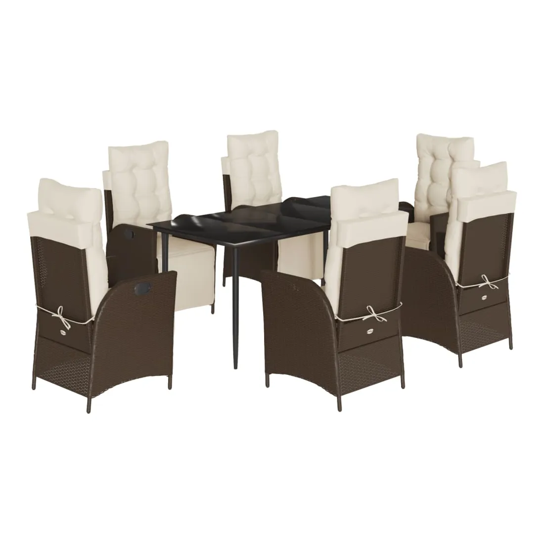 Cet ensemble de salle à manger de jardin est un excellent choix pour les repas en plein air ou pour vous détendre dans le jardin, l'arrière-cour ou le patio. Matériau durable : la résine tressée, également connue sous le nom de poly rotin, est un matériau synthétique solide et nécessitant peu d'entretien qui ressemble au rotin naturel. Il est léger, facile à nettoyer et couramment utilisé pour les meubles d'extérieur en raison de sa durabilité et de ses propriétés de résistance aux intempéries.Dossier et repose-pied réglables : ce siège de jardin est doté d'une poignée. Vous pouvez régler le dossier et le repose-pied dans n'importe quelle position en tirant sur la poignée, et les remettre rapidement dans leur position initiale.Expérience d'assise confortable : ce mobilier d'extérieur, doté de coussins épais, offre une expérience d'assise confortable.Housse amovible et lavable : ces coussins de siège sont dotés de housses amovibles pour un lavage et un entretien faciles. Les coussins de dossier ont un rabat à l'arrière pour une fixation facile aux dossiers.Dessus en verre : le dessus de la table d'extérieur est fabriqué en verre trempé solide et durable, ce qui le rend facile à nettoyer avec un chiffon humide et ajoute une touche d'élégance à votre espace extérieur. Bon à savoir :Pour que vos meubles d'extérieur restent beaux, nous vous recommandons de les protéger avec une housse imperméable.