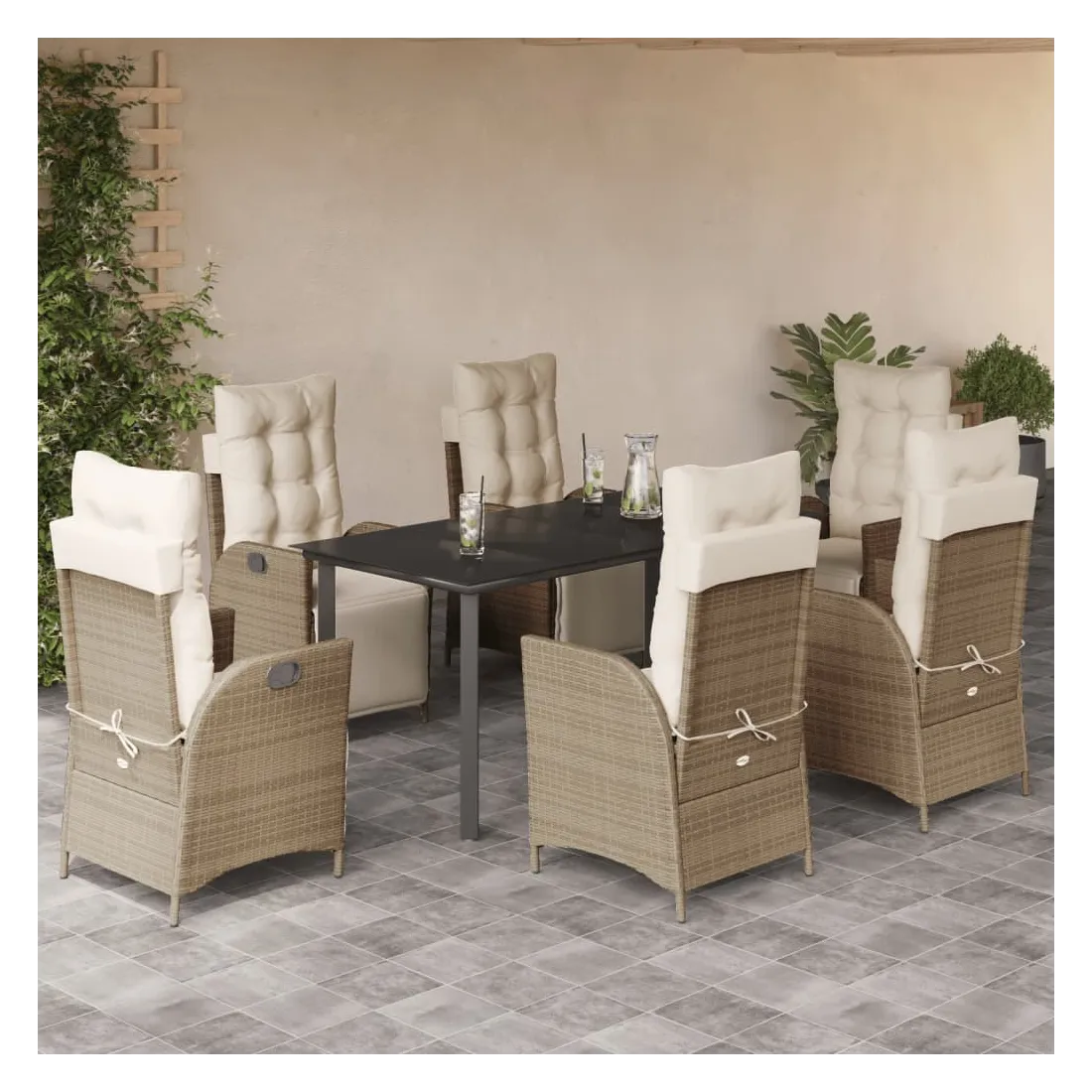 Cet ensemble de salle à manger de jardin est un excellent choix pour les repas en plein air ou pour vous détendre dans le jardin, l'arrière-cour ou le patio. Matériau durable : la résine tressée, également connue sous le nom de poly rotin, est un matériau synthétique solide et nécessitant peu d'entretien qui ressemble au rotin naturel. Il est léger, facile à nettoyer et couramment utilisé pour les meubles d'extérieur en raison de sa durabilité et de ses propriétés de résistance aux intempéries.Dossier et repose-pied réglables : ce siège de jardin est doté d'une poignée. Vous pouvez régler le dossier et le repose-pied dans n'importe quelle position en tirant sur la poignée, et les remettre rapidement dans leur position initiale.Expérience d'assise confortable : ce mobilier d'extérieur, doté de coussins épais, offre une expérience d'assise confortable.Housse amovible et lavable : ces coussins de siège sont dotés de housses amovibles pour un lavage et un entretien faciles. Les coussins de dossier ont un rabat à l'arrière pour une fixation facile aux dossiers.Dessus en verre : le dessus de la table d'extérieur est fabriqué en verre trempé solide et durable, ce qui le rend facile à nettoyer avec un chiffon humide et ajoute une touche d'élégance à votre espace extérieur. Bon à savoir :Pour que vos meubles d'extérieur restent beaux, nous vous recommandons de les protéger avec une housse imperméable.