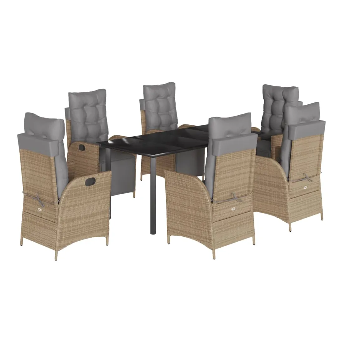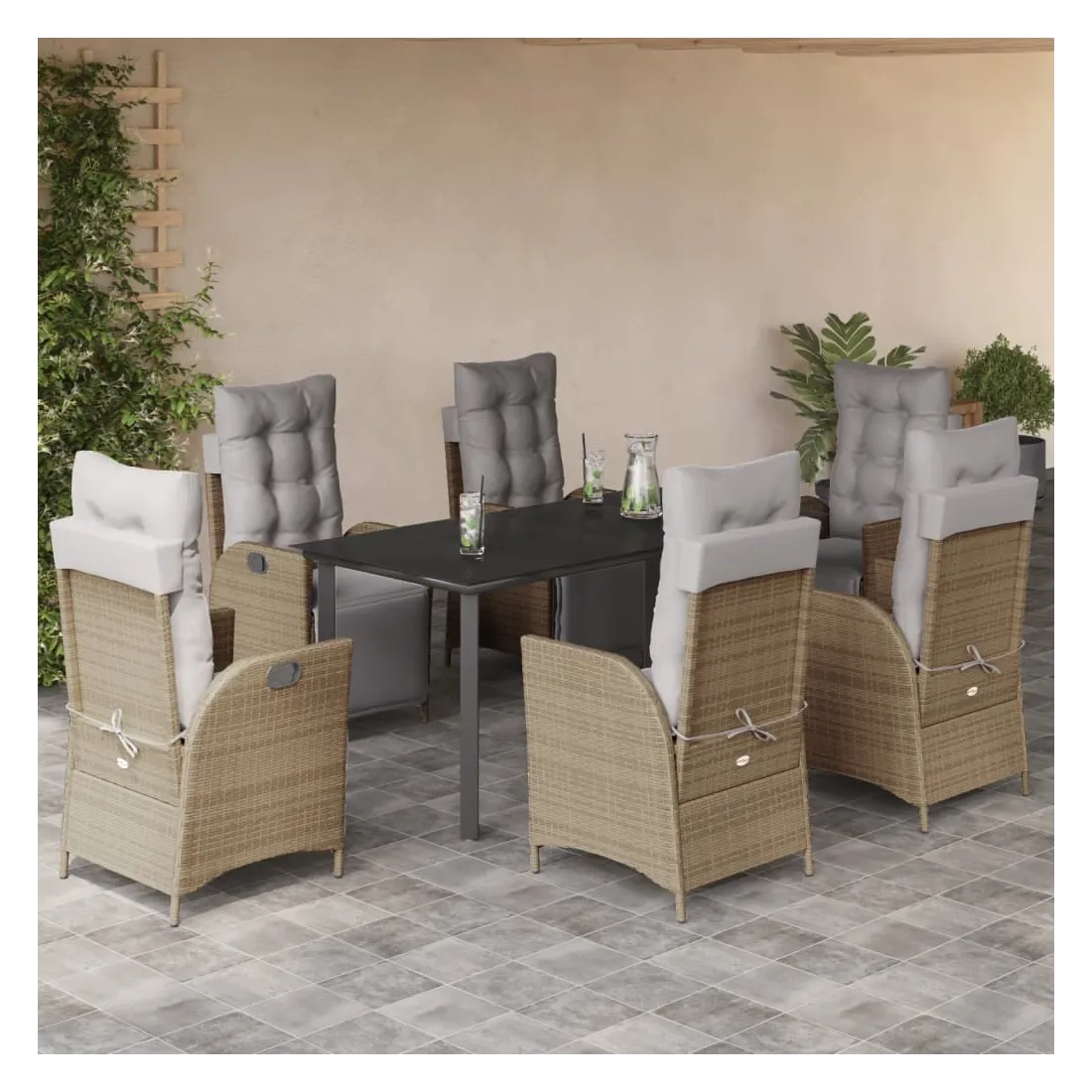 Cet ensemble de salle à manger de jardin est un excellent choix pour les repas en plein air ou pour vous détendre dans le jardin, l'arrière-cour ou le patio. Matériau durable : la résine tressée, également connue sous le nom de poly rotin, est un matériau synthétique solide et nécessitant peu d'entretien qui ressemble au rotin naturel. Il est léger, facile à nettoyer et couramment utilisé pour les meubles d'extérieur en raison de sa durabilité et de ses propriétés de résistance aux intempéries.Dossier et repose-pied réglables : ce siège de jardin est doté d'une poignée. Vous pouvez régler le dossier et le repose-pied dans n'importe quelle position en tirant sur la poignée, et les remettre rapidement dans leur position initiale.Expérience d'assise confortable : ce mobilier d'extérieur, doté de coussins épais, offre une expérience d'assise confortable.Housse amovible et lavable : ces coussins de siège sont dotés de housses amovibles pour un lavage et un entretien faciles. Les coussins de dossier ont un rabat à l'arrière pour une fixation facile aux dossiers.Dessus en verre : le dessus de la table d'extérieur est fabriqué en verre trempé solide et durable, ce qui le rend facile à nettoyer avec un chiffon humide et ajoute une touche d'élégance à votre espace extérieur. Bon à savoir :Pour que vos meubles d'extérieur restent beaux, nous vous recommandons de les protéger avec une housse imperméable.