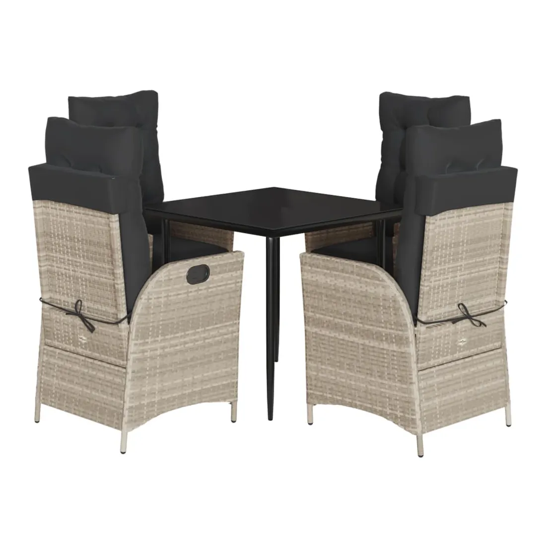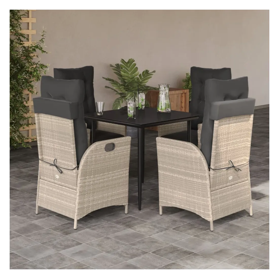 Cet ensemble de salle à manger de jardin est un excellent choix pour les repas en plein air ou pour vous détendre dans le jardin, l'arrière-cour ou le patio. Matériau durable : la résine tressée, également connue sous le nom de poly rotin, est un matériau synthétique solide et nécessitant peu d'entretien qui ressemble au rotin naturel. Il est léger, facile à nettoyer et couramment utilisé pour les meubles d'extérieur en raison de sa durabilité et de ses propriétés de résistance aux intempéries.Dossier et repose-pied réglables : ce siège de jardin est doté d'une poignée. Vous pouvez régler le dossier et le repose-pied dans n'importe quelle position en tirant sur la poignée, et les remettre rapidement dans leur position initiale.Expérience d'assise confortable : ce mobilier d'extérieur, doté de coussins épais, offre une expérience d'assise confortable.Housse amovible et lavable : ces coussins de siège sont dotés de housses amovibles pour un lavage et un entretien faciles. Les coussins de dossier ont un rabat à l'arrière pour une fixation facile aux dossiers.Dessus en verre : le dessus de la table d'extérieur est fabriqué en verre trempé solide et durable, ce qui le rend facile à nettoyer avec un chiffon humide et ajoute une touche d'élégance à votre espace extérieur. Bon à savoir :Pour que vos meubles d'extérieur restent beaux, nous vous recommandons de les protéger avec une housse imperméable.