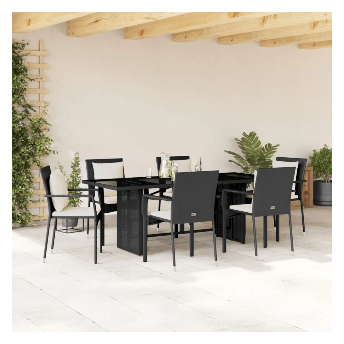 Cet ensemble de salle à manger de jardin est un excellent choix pour les repas en plein air ou pour vous détendre dans le jardin, l'arrière-cour ou le patio. Matériau durable : la résine tressée, également connue sous le nom de poly rotin, est un matériau synthétique solide et nécessitant peu d'entretien qui ressemble au rotin naturel. Il est léger, facile à nettoyer et couramment utilisé pour les meubles d'extérieur en raison de sa durabilité et de ses propriétés de résistance aux intempéries. Dessus en verre : le dessus de la table d'extérieur est fabriqué en verre trempé solide et durable, ce qui le rend facile à nettoyer avec un chiffon humide et ajoute une touche d'élégance à votre espace extérieur. Expérience d'assise confortable : ce mobilier d'extérieur, doté de coussins épais, offre une expérience d'assise confortable. Housse amovible et lavable : ces coussins de siège sont dotés de housses amovibles pour un lavage et un entretien faciles. Cadre robuste et stable : le cadre en acier enduit de poudre assure la solidité et la stabilité du meuble de jardin pour une utilisation quotidienne à l'extérieur. Bon à savoir :Pour que vos meubles d'extérieur restent beaux, nous vous recommandons de les protéger avec une housse imperméable.