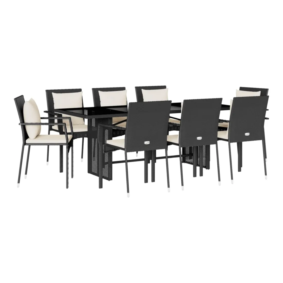 Cet ensemble de salle à manger de jardin est un excellent choix pour les repas en plein air ou pour vous détendre dans le jardin, l'arrière-cour ou le patio. Matériau durable : la résine tressée, également connue sous le nom de poly rotin, est un matériau synthétique solide et nécessitant peu d'entretien qui ressemble au rotin naturel. Il est léger, facile à nettoyer et couramment utilisé pour les meubles d'extérieur en raison de sa durabilité et de ses propriétés de résistance aux intempéries. Dessus en verre : le dessus de la table d'extérieur est fabriqué en verre trempé solide et durable, ce qui le rend facile à nettoyer avec un chiffon humide et ajoute une touche d'élégance à votre espace extérieur. Expérience d'assise confortable : ce mobilier d'extérieur, doté de coussins épais, offre une expérience d'assise confortable. Housse amovible et lavable : ces coussins de siège sont dotés de housses amovibles pour un lavage et un entretien faciles.Cadre robuste et stable : le cadre en acier enduit de poudre assure la solidité et la stabilité du meuble de jardin pour une utilisation quotidienne à l'extérieur. Bon à savoir :Pour que vos meubles d'extérieur restent beaux, nous vous recommandons de les protéger avec une housse imperméable.