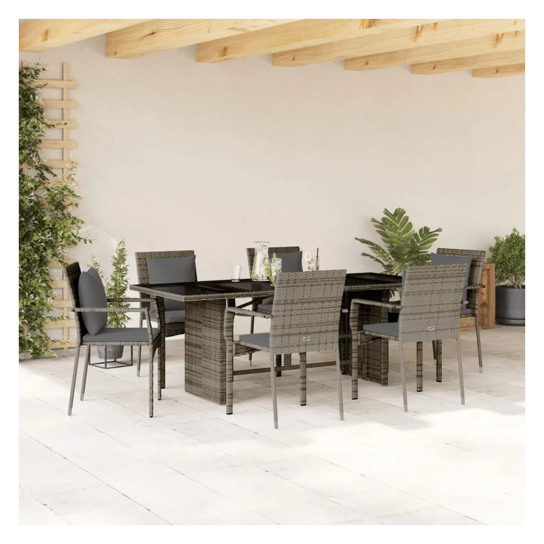 Cet ensemble de salle à manger de jardin est un excellent choix pour les repas en plein air ou pour vous détendre dans le jardin, l'arrière-cour ou le patio. Matériau durable : la résine tressée, également connue sous le nom de poly rotin, est un matériau synthétique solide et nécessitant peu d'entretien qui ressemble au rotin naturel. Il est léger, facile à nettoyer et couramment utilisé pour les meubles d'extérieur en raison de sa durabilité et de ses propriétés de résistance aux intempéries. Dessus en verre : le dessus de la table d'extérieur est fabriqué en verre trempé solide et durable, ce qui le rend facile à nettoyer avec un chiffon humide et ajoute une touche d'élégance à votre espace extérieur. Expérience d'assise confortable : ce mobilier d'extérieur, doté de coussins épais, offre une expérience d'assise confortable. Housse amovible et lavable : ces coussins de siège sont dotés de housses amovibles pour un lavage et un entretien faciles. Cadre robuste et stable : le cadre en acier enduit de poudre assure la solidité et la stabilité du meuble de jardin pour une utilisation quotidienne à l'extérieur. Bon à savoir :Pour que vos meubles d'extérieur restent beaux, nous vous recommandons de les protéger avec une housse imperméable.