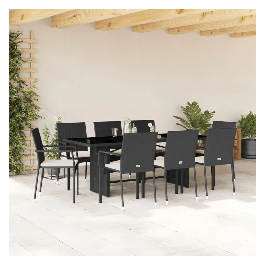 Cet ensemble de salle à manger de jardin est un excellent choix pour les repas en plein air ou pour vous détendre dans le jardin, l'arrière-cour ou le patio. Matériau durable : la résine tressée, également connue sous le nom de poly rotin, est un matériau synthétique solide et nécessitant peu d'entretien qui ressemble au rotin naturel. Il est léger, facile à nettoyer et couramment utilisé pour les meubles d'extérieur en raison de sa durabilité et de ses propriétés de résistance aux intempéries. Dessus en verre : le dessus de la table d'extérieur est fabriqué en verre trempé solide et durable, ce qui le rend facile à nettoyer avec un chiffon humide et ajoute une touche d'élégance à votre espace extérieur. Expérience d'assise confortable : ce mobilier d'extérieur, doté de coussins épais, offre une expérience d'assise confortable. Cadre robuste et stable : le cadre en acier enduit de poudre assure la solidité et la stabilité du meuble de jardin pour une utilisation quotidienne à l'extérieur. Bon à savoir :Pour que vos meubles d'extérieur restent beaux, nous vous recommandons de les protéger avec une housse imperméable.