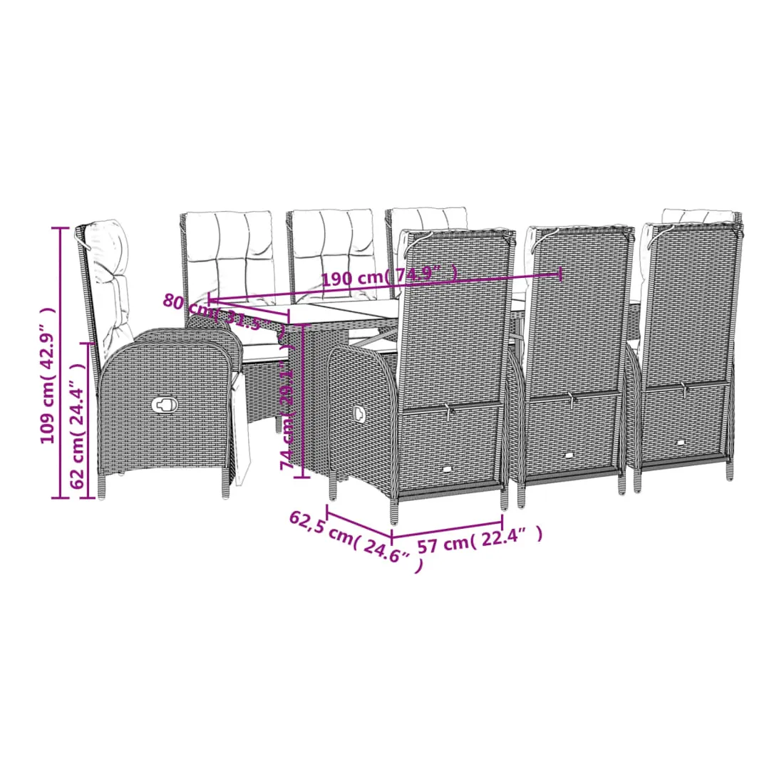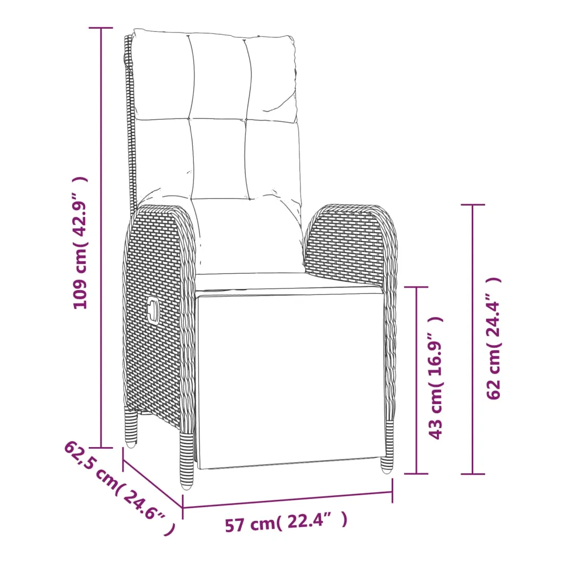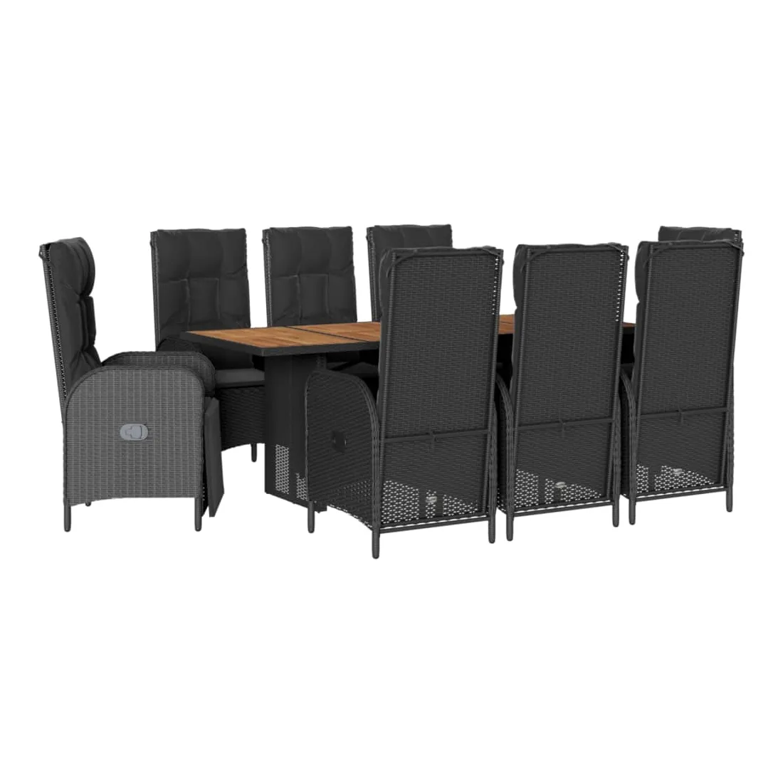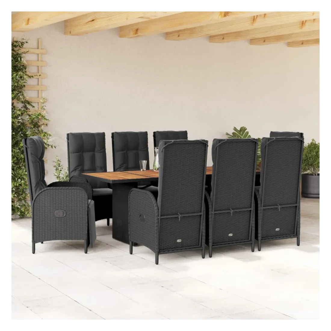 Cet ensemble de salle à manger de jardin est un excellent choix pour les repas en plein air ou pour vous détendre dans le jardin, l'arrière-cour ou le patio. Matériau durable : la résine tressée, également connue sous le nom de poly rotin, est un matériau synthétique solide et nécessitant peu d'entretien qui ressemble au rotin naturel. Il est léger, facile à nettoyer et couramment utilisé pour les meubles d'extérieur en raison de sa durabilité et de ses propriétés de résistance aux intempéries. Dossier réglable : ce siège de jardin est doté d'une poignée. Vous pouvez régler le dossier dans n'importe quelle position en tirant sur la poignée et le remettre rapidement dans sa position initiale.Dessus stable et facile à nettoyer : cette table de jardin a un dessus en bois d'acacia robuste, durable et facile à nettoyer avec un chiffon humide. Expérience d'assise confortable : ce mobilier d'extérieur, doté de coussins épais, offre une expérience d'assise confortable. Housse amovible et lavable : ces coussins de siège sont dotés de housses amovibles pour un lavage et un entretien faciles. Bon à savoir :Pour que vos meubles d'extérieur restent beaux, nous vous recommandons de les protéger avec une housse imperméable.