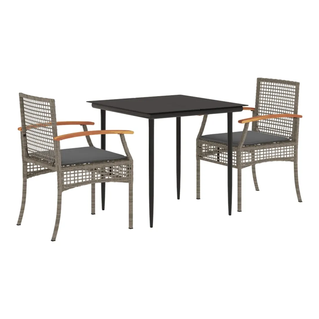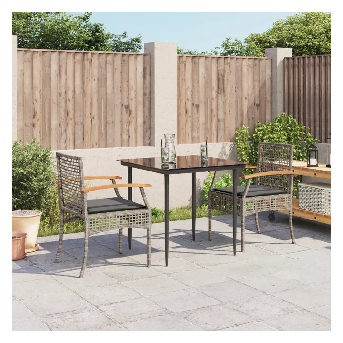Cet ensemble de salle à manger de jardin est un excellent choix pour les repas en plein air ou pour vous détendre dans le jardin, dans l'arrière-cour ou sur la terrasse. Matériau durable : la résine tressée, également connue sous le nom de poly rotin, est un matériau synthétique solide et nécessitant peu d'entretien qui ressemble au rotin naturel. Il est léger, facile à nettoyer et couramment utilisé pour les meubles d'extérieur en raison de sa durabilité et de ses propriétés de résistance aux intempéries.Expérience d'assise confortable : ce mobilier d'extérieur, doté de coussins épais, offre une expérience d'assise confortable.Housse amovible et lavable : ces coussins de siège sont dotés de housses amovibles pour un lavage et un entretien faciles.Dessus en verre : le dessus de la table d'extérieur est fabriqué en verre trempé solide et durable, ce qui le rend facile à nettoyer avec un chiffon humide et ajoute une touche d'élégance à votre espace extérieur.Cadre robuste et stable : le cadre en acier enduit de poudre assure la solidité et la stabilité du meuble de jardin pour une utilisation quotidienne à l'extérieur. Bon à savoir :Pour que vos meubles d'extérieur restent beaux, nous vous recommandons de les protéger avec une housse imperméable.