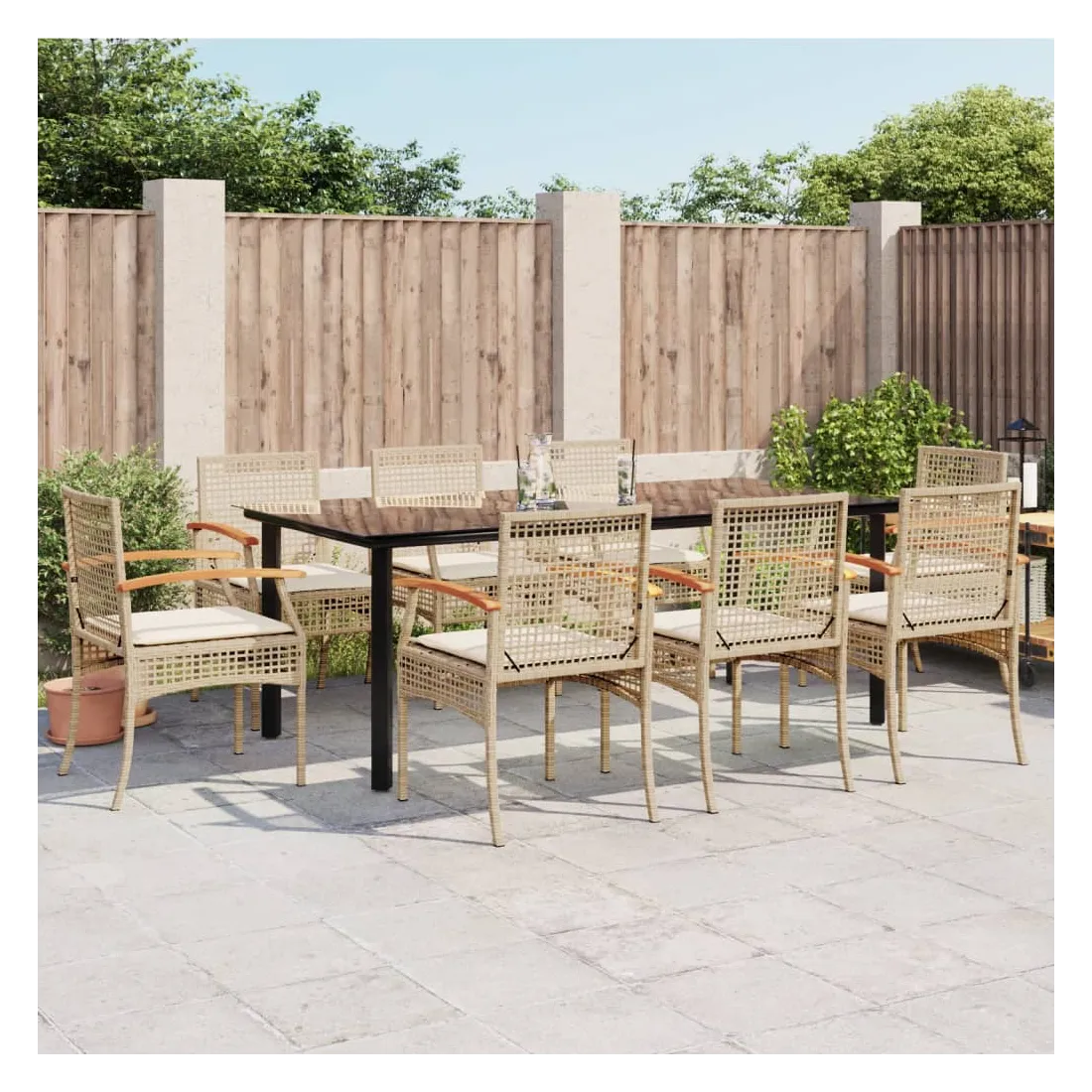 Cet ensemble de salle à manger de jardin est un excellent choix pour les repas en plein air ou pour vous détendre dans le jardin, dans l'arrière-cour ou sur la terrasse. Matériau durable : la résine tressée, également connue sous le nom de poly rotin, est un matériau synthétique solide et nécessitant peu d'entretien qui ressemble au rotin naturel. Il est léger, facile à nettoyer et couramment utilisé pour les meubles d'extérieur en raison de sa durabilité et de ses propriétés de résistance aux intempéries.Expérience d'assise confortable : ce mobilier d'extérieur, doté de coussins épais, offre une expérience d'assise confortable.Housse amovible et lavable : ces coussins de siège sont dotés de housses amovibles pour un lavage et un entretien faciles.Dessus en verre : le dessus de la table d'extérieur est fabriqué en verre trempé solide et durable, ce qui le rend facile à nettoyer avec un chiffon humide et ajoute une touche d'élégance à votre espace extérieur.Cadre robuste et stable : le cadre en acier enduit de poudre assure la solidité et la stabilité du meuble de jardin pour une utilisation quotidienne à l'extérieur. Bon à savoir :Pour que vos meubles d'extérieur restent beaux, nous vous recommandons de les protéger avec une housse imperméable.