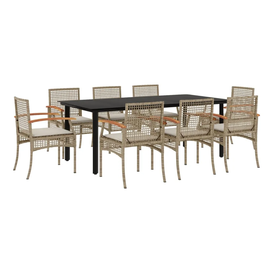 - Matériau : résine tressée, acier enduit de poudre, bois d'acacia massif avec finition à l'huile