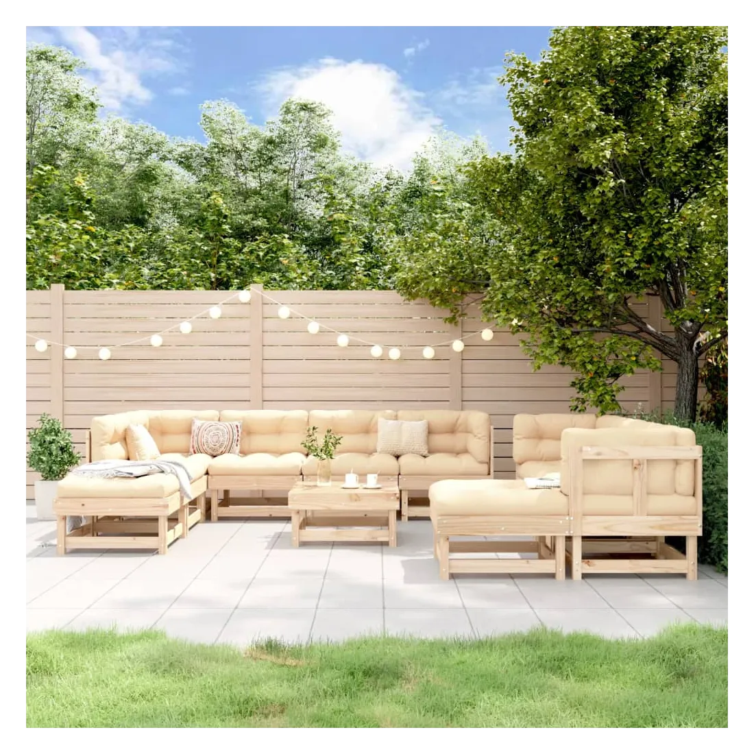Ce salon de jardin en bois, qui se démarque par son design à lattes, sera un excellent supplément à votre jardin, patio ou terrasse pour profiter d'un moment agréable avec votre famille ou vos amis. Bois de pin massif : le bois de pin massif est un matériau naturel magnifique. Le bois de pin a un grain droit et les nœuds donnent au matériau son aspect caractéristique et rustique.Expérience d'assise confortable : le dossier ajoute un confort d'assise supplémentaire au canapé d'extérieur.Design modulaire : le canapé est flexible et facile à déplacer. Vous pouvez le combiner avec d'autres segments modulaires de la boutique en ligne pour créer vos propres configurations de salon de jardin ! Bon à savoir :Pour que vos meubles d'extérieur restent beaux, nous vous recommandons de les protéger avec une housse imperméable.Les coussins ne sont pas inclus dans la livraison.