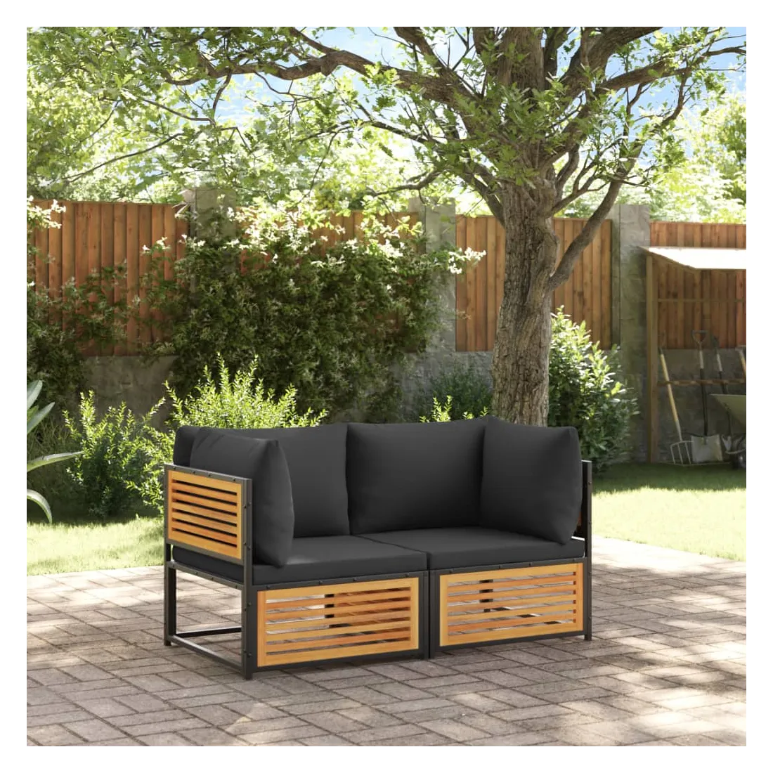 vidaXLCet ensemble de canapés de jardin est le complément parfait de votre arrière-cour, terrasse ou patio, offrant un espace confortable et accueillant pour discuter avec la famille et les amis ou simplement se détendre et profiter de l'extérieur. Cadre robuste et stable : le bois d'acacia massif est connu pour sa solidité et sa durabilité. Ses couleurs variées et ses grains uniques lui confèrent un aspect attrayant. Sa stabilité et sa résistance aux intempéries en font un matériau idéal pour la fabrication de meubles d'intérieur et d'extérieur. De plus, le cadre en acier enduit de poudre garantit la solidité et la stabilité du mobilier de jardin pour une utilisation quotidienne en extérieur. Bonne ventilation et prévention de l'accumulation d'eau : la conception à lattes favorise une circulation optimale de l'air et empêche efficacement l'accumulation d'eau, assurant ainsi un mobilier de jardin sec et confortable.Expérience d'assise confortable : ce mobilier d'extérieur, doté de coussins épais, offre une expérience d'assise confortable. Housse amovible et lavable : ces coussins de siège sont dotés de housses amovibles pour un lavage et un entretien faciles. Bon à savoir :Pour que vos meubles d'extérieur restent beaux, nous vous recommandons de les protéger avec une housse imperméable.