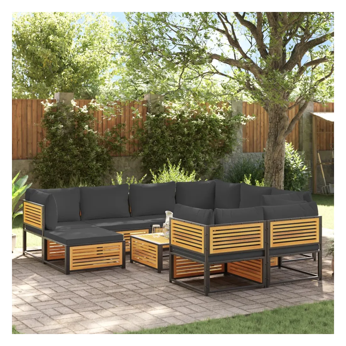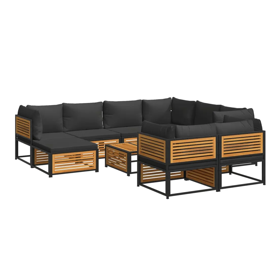 Salon de jardin avec coussins 10 pcs bois d'acacia solide