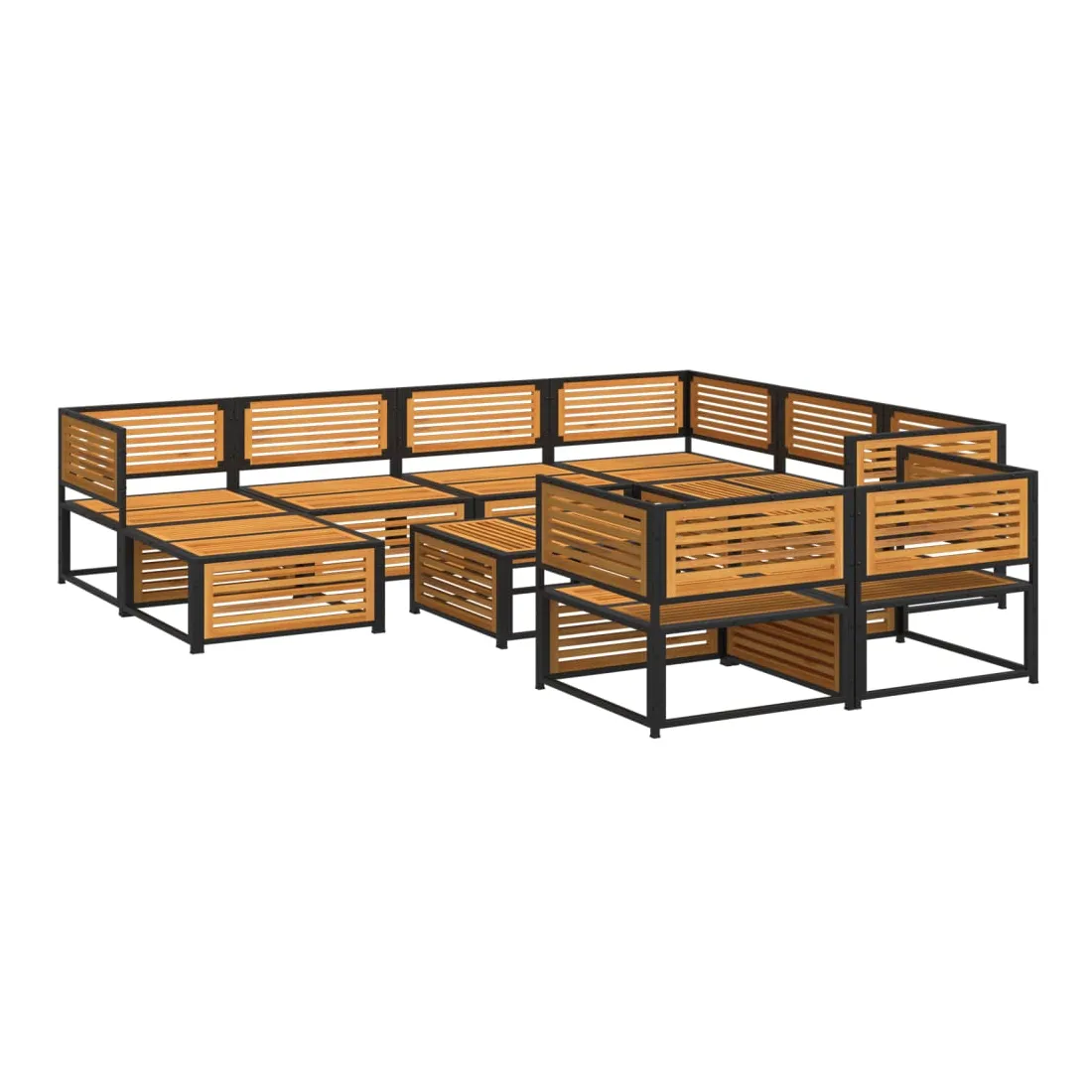vidaXLCet ensemble de canapés de jardin est le complément parfait de votre arrière-cour, terrasse ou patio, offrant un espace confortable et accueillant pour discuter avec la famille et les amis ou simplement se détendre et profiter de l'extérieur. Cadre robuste et stable : le bois d'acacia massif est connu pour sa solidité et sa durabilité. Ses couleurs variées et ses grains uniques lui confèrent un aspect attrayant. Sa stabilité et sa résistance aux intempéries en font un matériau idéal pour la fabrication de meubles d'intérieur et d'extérieur. De plus, le cadre en acier enduit de poudre garantit la solidité et la stabilité du mobilier de jardin pour une utilisation quotidienne en extérieur. Dessus stable et facile à nettoyer : cette table de jardin a un dessus en bois d'acacia robuste, durable et facile à nettoyer avec un chiffon humide. Bonne ventilation et prévention de l'accumulation d'eau : la conception à lattes favorise une circulation optimale de l'air et empêche efficacement l'accumulation d'eau, assurant ainsi un mobilier de jardin sec et confortable.Expérience d'assise confortable : ce mobilier d'extérieur, doté de coussins épais, offre une expérience d'assise confortable. Housse amovible et lavable : ces coussins de siège sont dotés de housses amovibles pour un lavage et un entretien faciles. Bon à savoir :Pour que vos meubles d'extérieur restent beaux, nous vous recommandons de les protéger avec une housse imperméable.