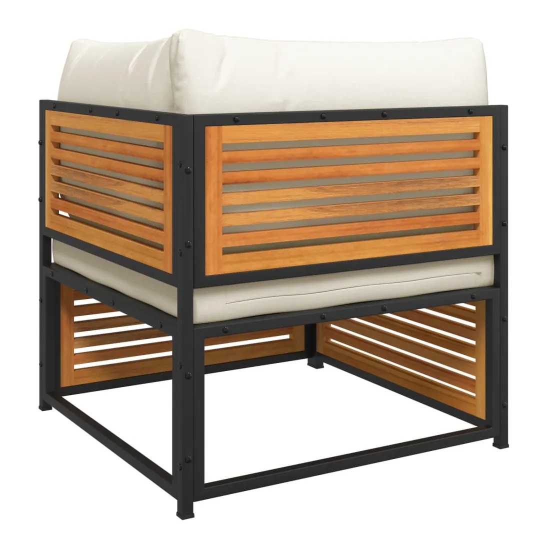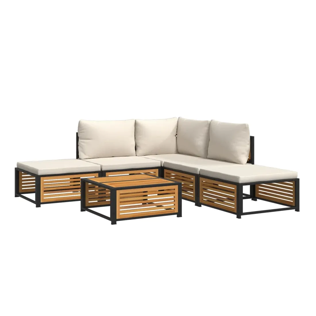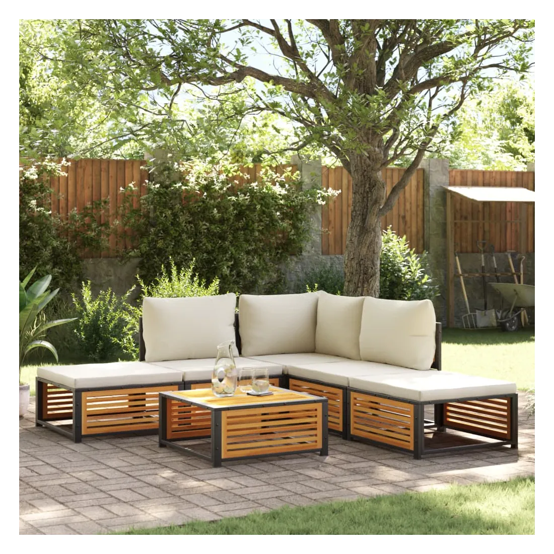 Cet ensemble de canapés de jardin est le complément parfait de votre arrière-cour, terrasse ou patio, offrant un espace confortable et accueillant pour discuter avec la famille et les amis ou simplement se détendre et profiter de l'extérieur. Cadre robuste et stable : le bois d'acacia massif est connu pour sa solidité et sa durabilité. Ses couleurs variées et ses grains uniques lui confèrent un aspect attrayant. Sa stabilité et sa résistance aux intempéries en font un matériau idéal pour la fabrication de meubles d'intérieur et d'extérieur. De plus, le cadre en acier enduit de poudre garantit la solidité et la stabilité du mobilier de jardin pour une utilisation quotidienne en extérieur. Dessus stable et facile à nettoyer : cette table de jardin a un dessus en bois d'acacia robuste, durable et facile à nettoyer avec un chiffon humide. Bonne ventilation et prévention de l'accumulation d'eau : la conception à lattes favorise une circulation optimale de l'air et empêche efficacement l'accumulation d'eau, assurant ainsi un mobilier de jardin sec et confortable.Expérience d'assise confortable : ce mobilier d'extérieur, doté de coussins épais, offre une expérience d'assise confortable. Housse amovible et lavable : ces coussins de siège sont dotés de housses amovibles pour un lavage et un entretien faciles. Bon à savoir :Pour que vos meubles d'extérieur restent beaux, nous vous recommandons de les protéger avec une housse imperméable.