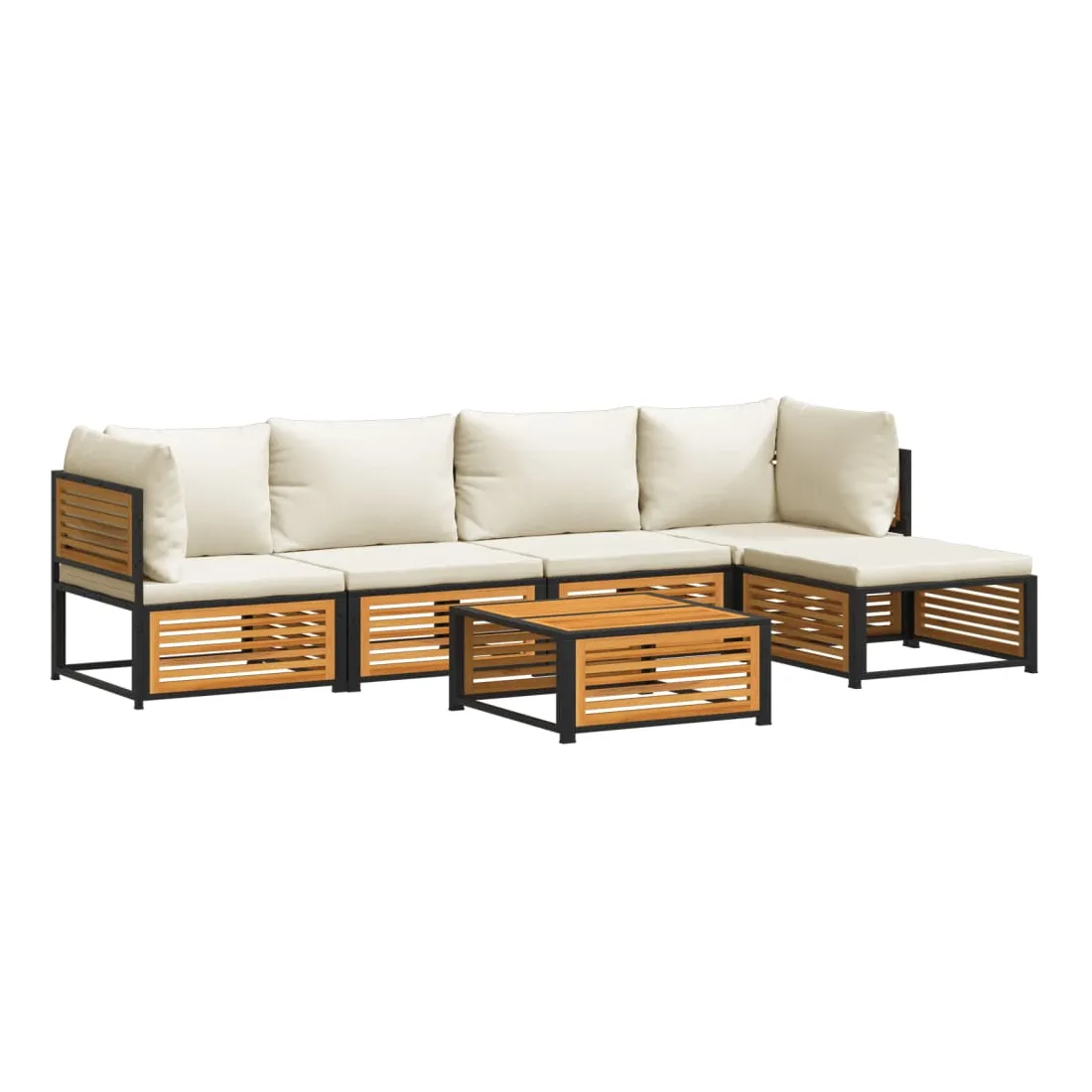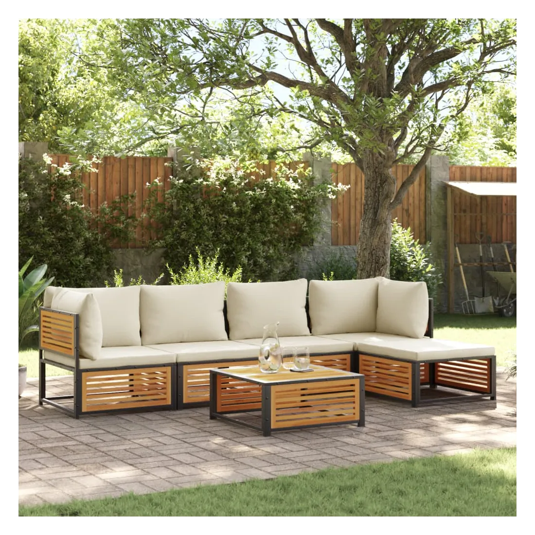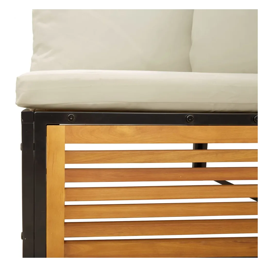 Cet ensemble de canapés de jardin est le complément parfait de votre arrière-cour, terrasse ou patio, offrant un espace confortable et accueillant pour discuter avec la famille et les amis ou simplement se détendre et profiter de l'extérieur. Cadre robuste et stable : le bois d'acacia massif est connu pour sa solidité et sa durabilité. Ses couleurs variées et ses grains uniques lui confèrent un aspect attrayant. Sa stabilité et sa résistance aux intempéries en font un matériau idéal pour la fabrication de meubles d'intérieur et d'extérieur. De plus, le cadre en acier enduit de poudre garantit la solidité et la stabilité du mobilier de jardin pour une utilisation quotidienne en extérieur. Dessus stable et facile à nettoyer : cette table de jardin a un dessus en bois d'acacia robuste, durable et facile à nettoyer avec un chiffon humide. Bonne ventilation et prévention de l'accumulation d'eau : la conception à lattes favorise une circulation optimale de l'air et empêche efficacement l'accumulation d'eau, assurant ainsi un mobilier de jardin sec et confortable.Expérience d'assise confortable : ce mobilier d'extérieur, doté de coussins épais, offre une expérience d'assise confortable. Housse amovible et lavable : ces coussins de siège sont dotés de housses amovibles pour un lavage et un entretien faciles. Bon à savoir :Pour que vos meubles d'extérieur restent beaux, nous vous recommandons de les protéger avec une housse imperméable.